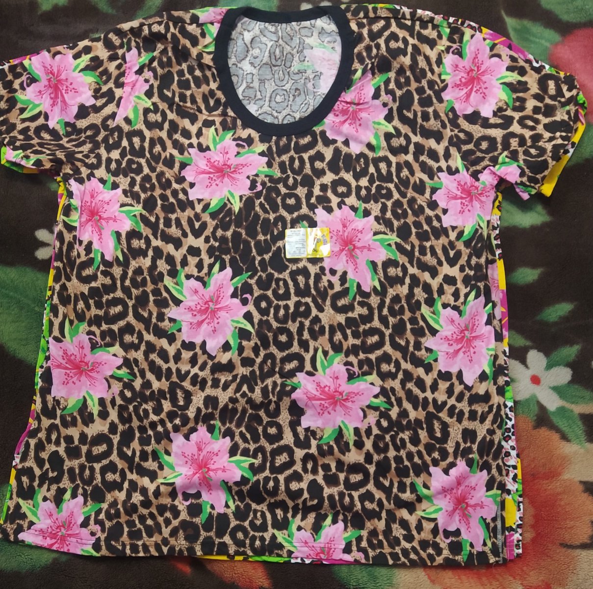 Дуже сподобалася модель футболочки, і не тільки мені. Замовила собі, та довелося ще й подружкам замовити. У розмірі 116-124 (зріст 158-164) -Довжина 71 см, ПОГ- 58 см. Брала в такому ж розмірі футболку в іншому кольорі (леопард), то та трохи (на 1-1,5 см) вужче.Плюсы: Яскравий колір, гарна якість пошиву, зручна модель, натуральна тканина. -