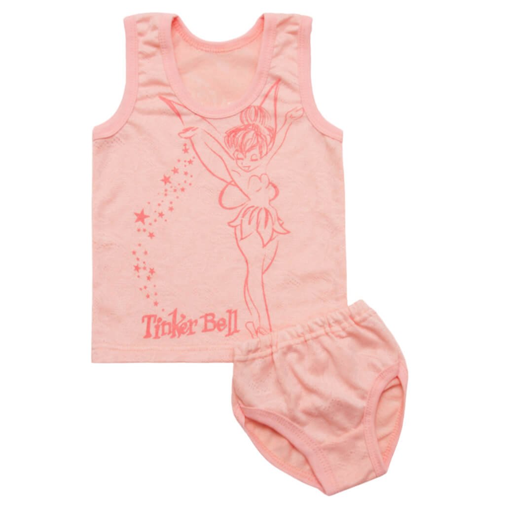 Комплект для девочки из мягкого приятного к телу полотна - мультирип. Полотно хорошо показывает себя в носке, не кошлатится, а также позволяет нежной коже малышки дышать. Комплект состоит из маечки и трусиков. Проймы майки обработаны бейкой в тон полотна, по низу распошив. Проймы трусиков также обработаны бейкой, в поясе эластичная, мягкая резиночка. Основным украшение и изюминкой этого наборчика является красивая, нежная покраска Феи по переду маечки. В таком белье Вашей малышке будет удобно и комфортно.