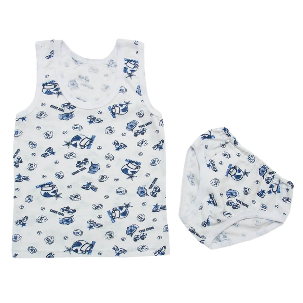 Комплект нижнего белья для мальчика изготовлен из хлопчатобумажного кулирного полотна. Комплект простой, но пошит для комфорта. При создании данной модели были учтены все пожелания и удобства. Майка стандартного пошива, как и трусики. Края обработаны мягкой и приятной на ощупь бейкой, которая не раздражает и не натирает кожу ребенка. Трусики на эластичной резинке, поэтому хорошо сидят. Полотно качественное, не теряет цвет и форму. Поэтому можете смело заказывать данный комплект для своего мальчишки и быть спокойными.