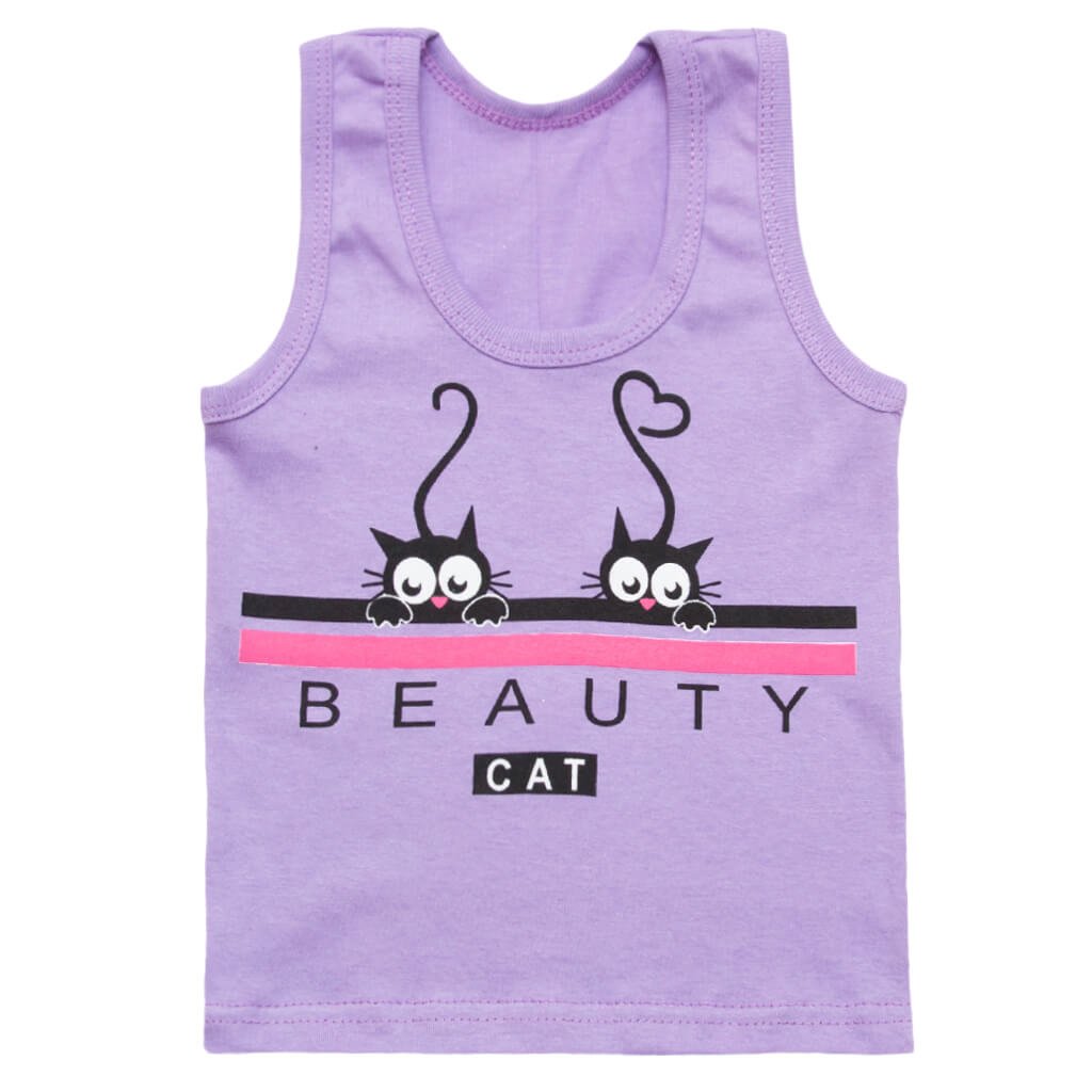 Майка для девочки Модель 139-022 Сиреневый Котики