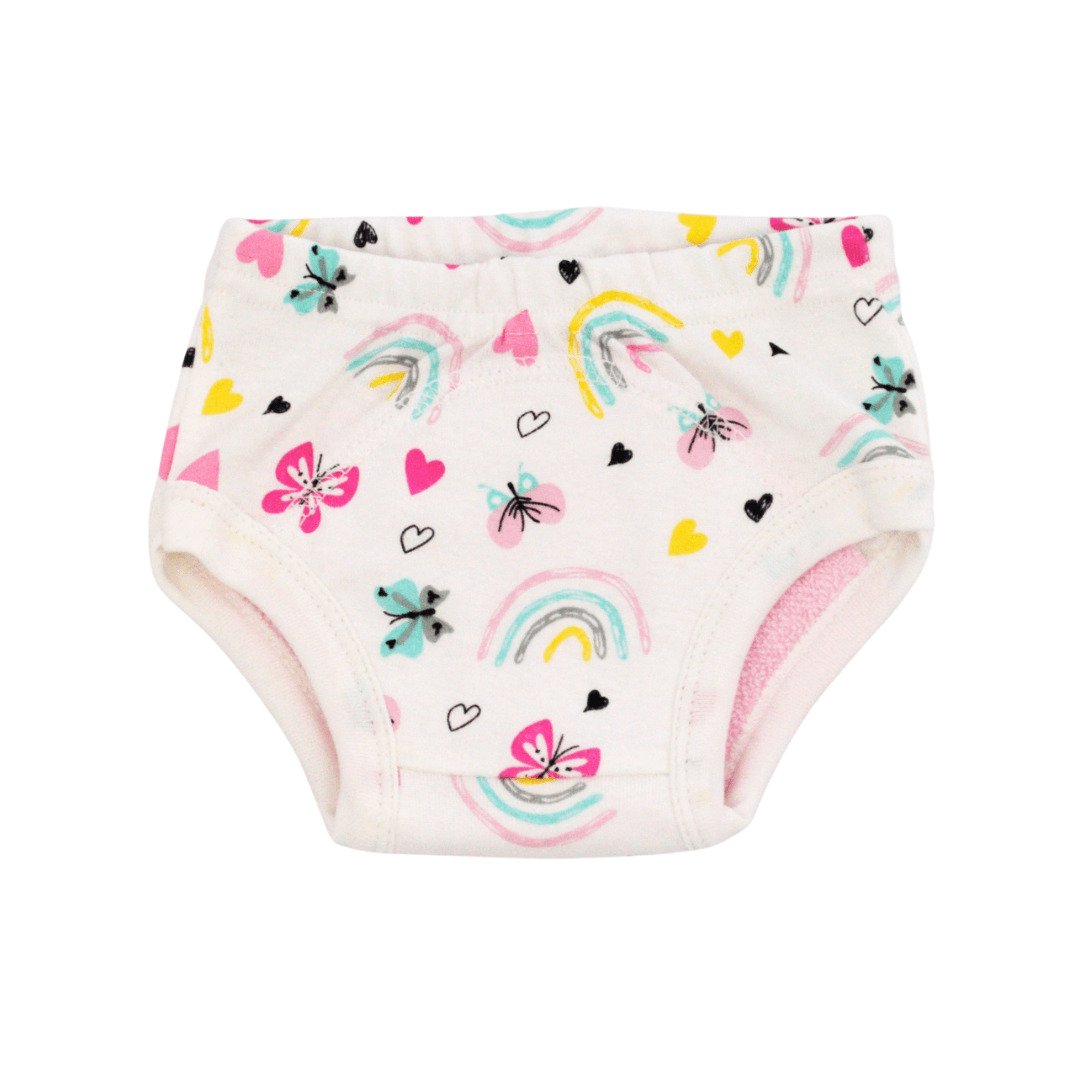 Тренировочные трусики для малышей - это отличный выбор на пути к обучению использованию туалета. Они изготовлены из мягкого хлопкового полотна - интерлок белого цвета с принтом бабочек, которое гарантирует комфорт и бережно заботится о чувствительной коже малыша. Яркий принт добавляет веселья в повседневный образ, а эластичный пояс с яркими отделками обеспечивает надежную посадку без лишнего давления. Особенность этих трусиков - многослойная подкладка, состоящая из махры, непромокаемой мембраны и трикотажного полотна. Такой слой надежно защищает от случайных «неудач» и удерживает влагу, сохраняя одежду сухой и комфортной для малыша.