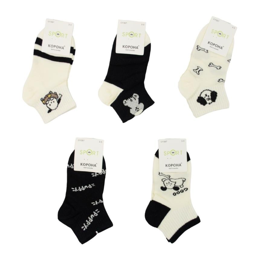 Детские носки изготовлены из мягкого и дышащего хлопкового материала, они приятны на ощупь и не вызывают раздражения. Модель черно-белого цвета, украшена милыми принтами с собачками, что точно понравится детям. Носки имеют обычный шов и эластичную манжету, не сдавливающую ножку, обеспечивая комфорт даже при длительном ношении. Подходят для повседневной обуви, занятий в садике или школе. Наш интернет-магазин уже с нетерпением ждёт Ваш заказ!Страна производитель - Китай