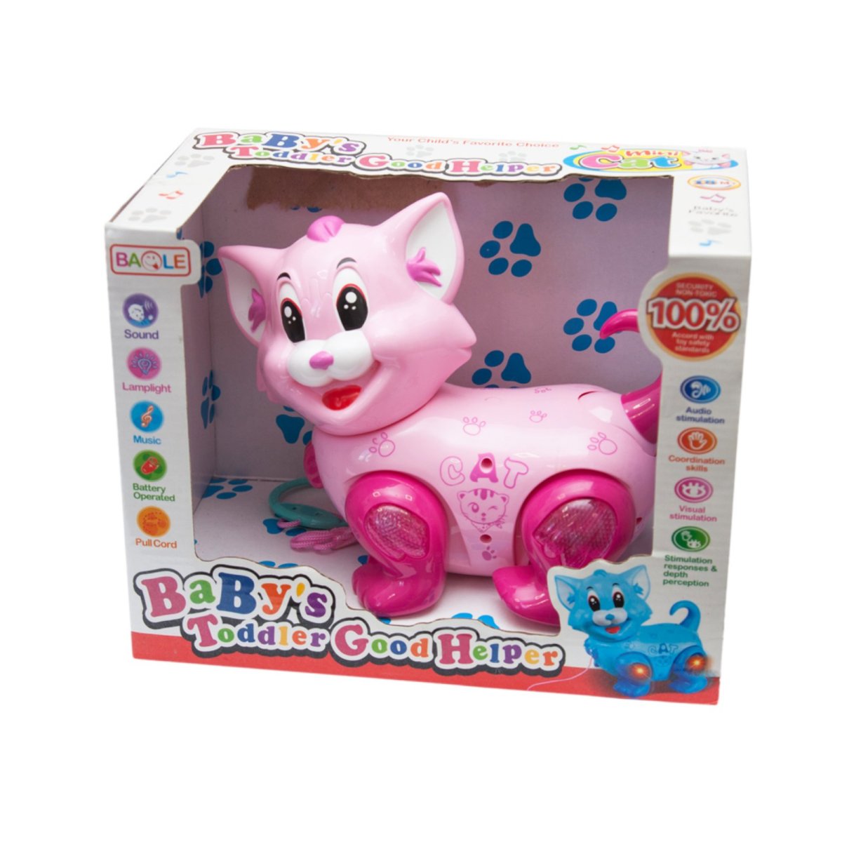 Милый котёнок с озорной мордочкой уже готов стать лучшим другом для вашего малыша. Яркая игрушка в виде забавного зверька привлекает внимание не только внешним видом, но и своими функциями. При движении лапки игрушки двигаются, создавая эффект настоящей ходьбы, а встроенная светомузыка добавляет веселья в каждую игру. Потянув за верёвочку, ребёнок сможет водить игрушку за собой, развивая координацию и моторику. Мягкий свет и приятные звуки стимулируют зрительное и слуховое восприятие, а возможность крутить хвостик и голову вручную делает игру ещё интереснее.
