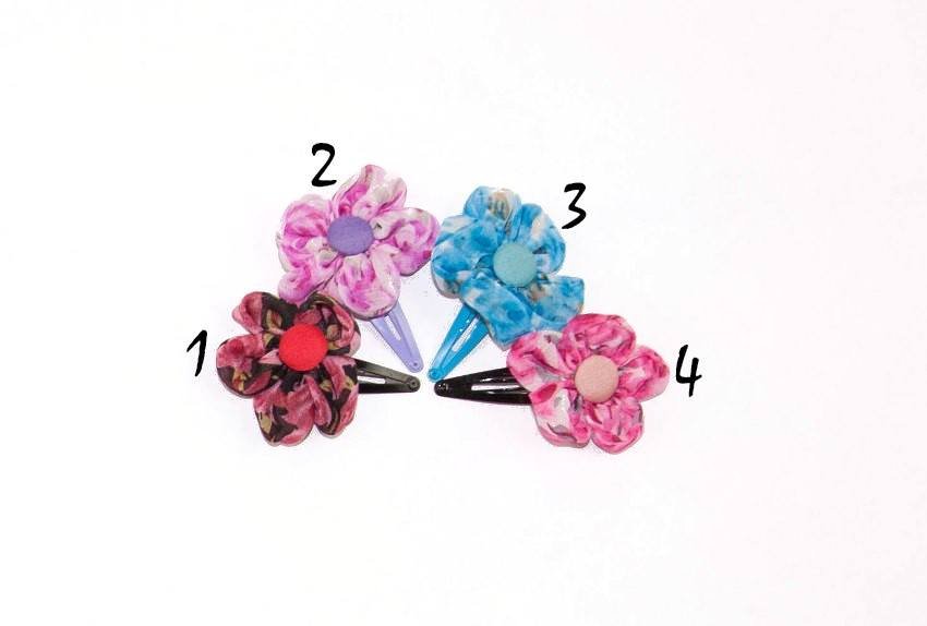 Заколка "тик-так", которая проста в пользовании, практична в носке и обаятельна в оригинальности. Каждая пара заколок разного цвета. На ней расположен большой цветок. Он сделан из шифоновой ткани, по которой порисованы цветы. В центре цветочек декорирован пуговкой. Даже одна заколка-цветочек способна стать эффективным акцентом детской непосредственности. Многофункциональные заколки уместно и гармонично смотрятся в детских обликах, актуально перекликаются с нарядами девочек-подростков, и станут "изюминкой" и фишкой в образе креативных женщин!