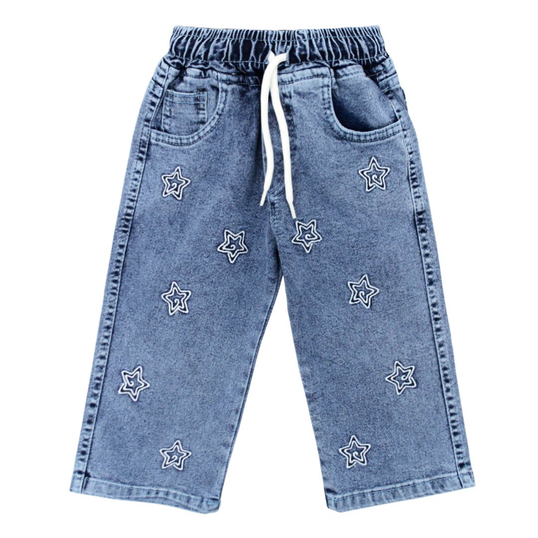 Весенние новинки уже готовы радовать Вас и Вашего ребёнка. Очень стильные джинсы синего цвета для девочки это то, что нужно в наконец-то наступивший теплый период. Изготовлены из высококачественного джинсового материала, благодаря которому Вашей маленькой моднице будет невероятно комфортно. Джинсы отлично сядут на талии, с помощью резинки на поясе, а также на штанах присутствует шнурок. А при помощи интересных нашивок в виде звездочек, данная модель приобретает чрезвычайно красивый вид. Такие джинсы точно должны быть в гардеробе каждой маленькой принцессы.