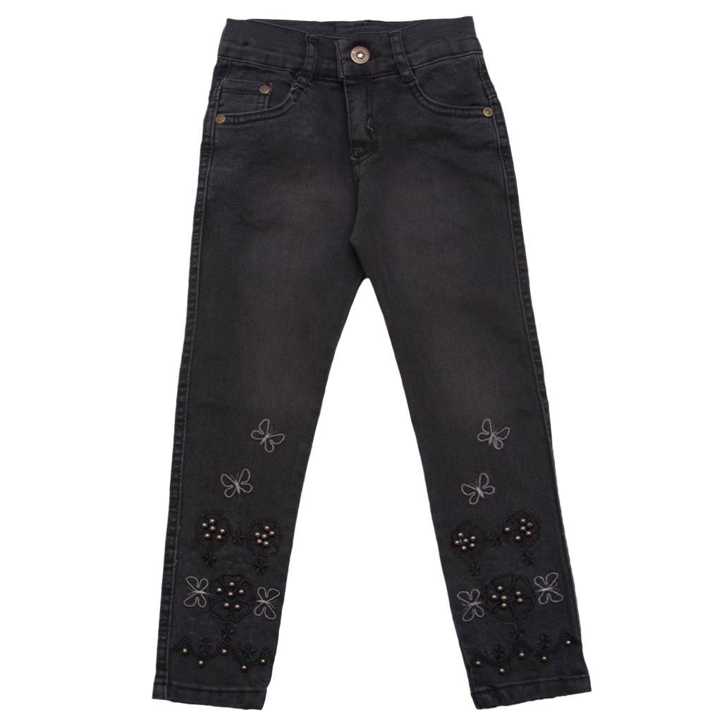 Стильные детские джинсы для девочки станут отличным дополнением гардероба, сочетая в себе удобство и модный дизайн. Модель выполнена в универсальном цвете, который легко комбинировать с различными оттенками одежды. Изюминкой изделия являются аккуратные декоративные элементы в нижней части брюк - нежные вышитые узоры. Фасон предусматривает удобную посадку, которая не стесняет движений, а классическая застёжка на пуговицу и молнию обеспечивает надежную фиксацию. Функциональные карманы спереди и сзади делают модель не только стильной, но и практичной.