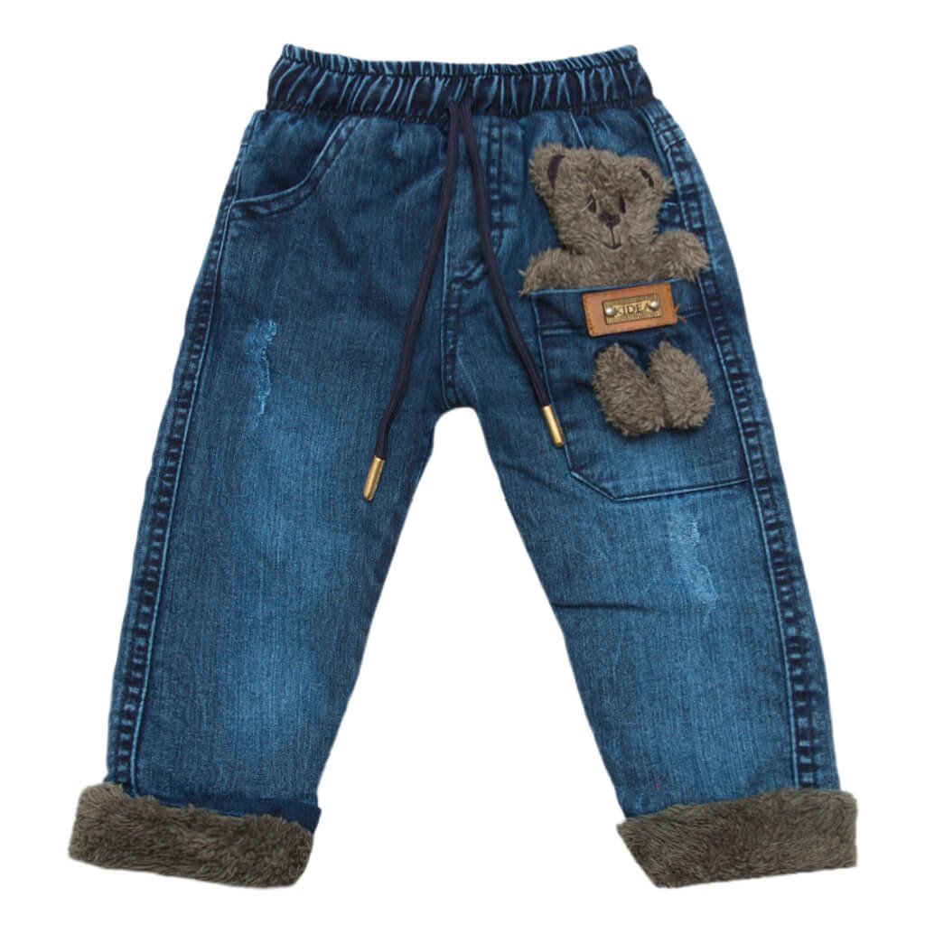 Джинсы утепленные для мальчика Модель 23002 Мишка Хаки