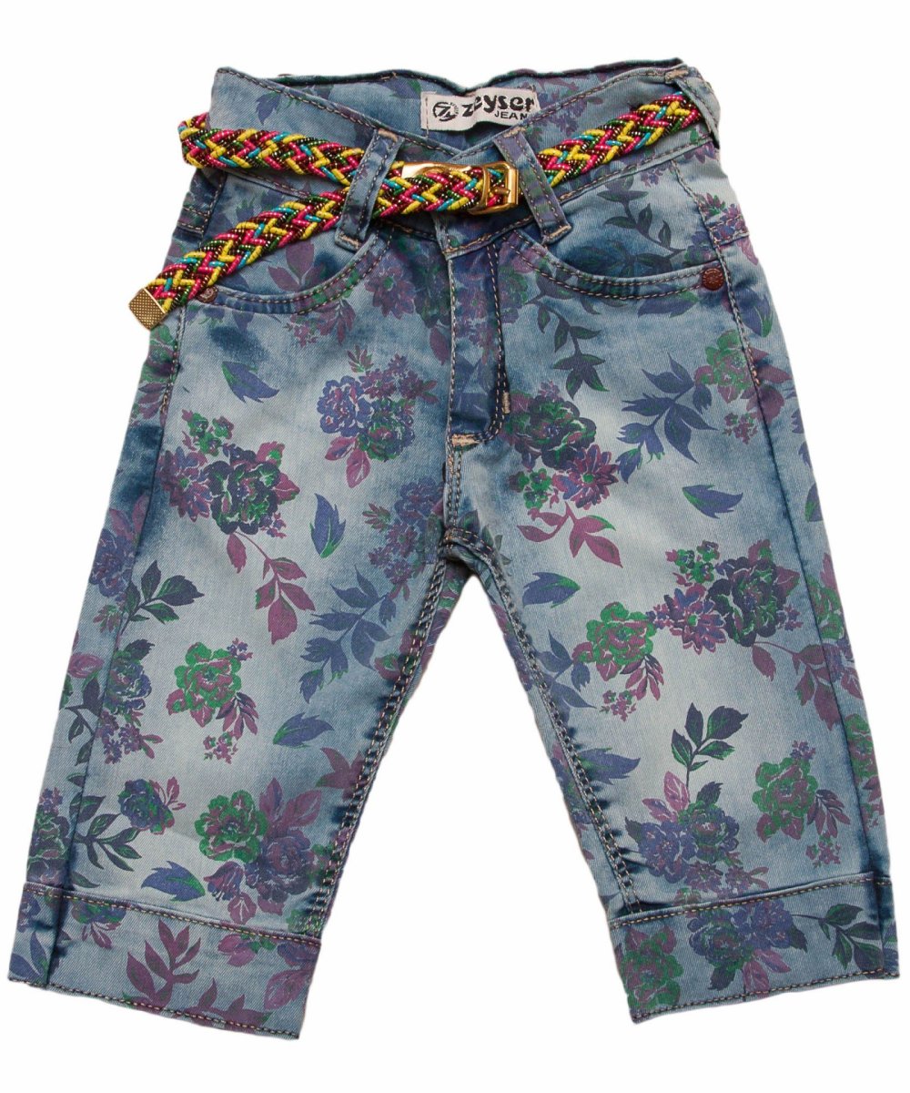 Бриджи джинсовые для девочки выполнены из качественного джинса. Вся моделька украшена рисунками, в виде цветов. По низу ножек - отстрочены манжеты. Для удобств вашей девочки, впереди и сзади - карманы. Так же в комплект входит яркий и красочный ремень, которым можно регулировать размер изделия. В таких бриджах будет комфортно выходить на прогулки, в детский сад или на праздники. Подберите под бриджи в нашем интернет-магазине футболку или блузу для своей малышки и будьте стильными этим летом!