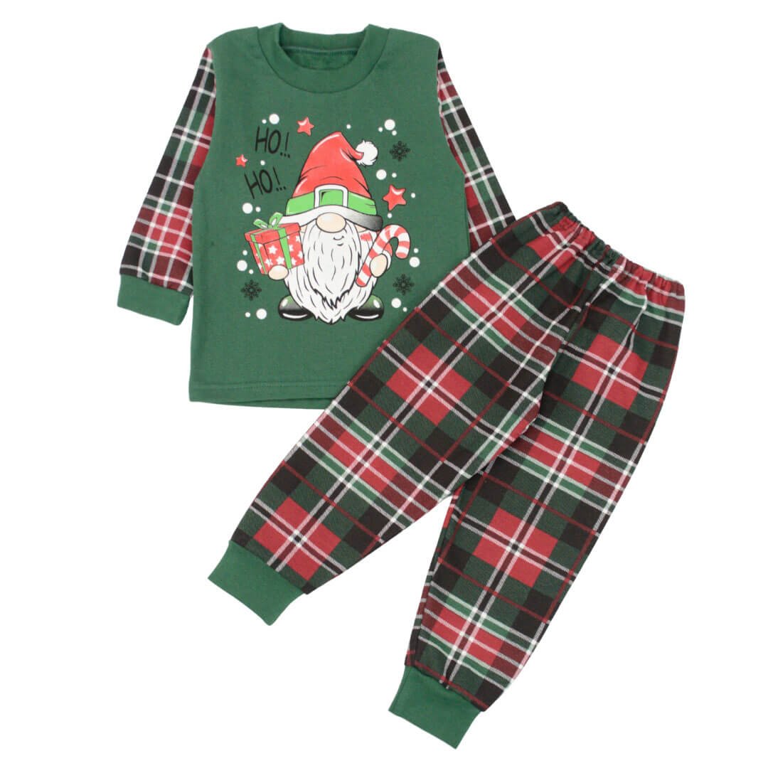 Сон для ребенка очень важный. Ведь хорошо выспавшись, ребенок получает много сил и энергии на целый день. Но часто для родителей становится трудной задачей уложить ребенка спать. Значительно упростит задание поможет обычная пижамка, ведь когда ребенок её одевает, он уже начинает готовиться ко сну. А если еще эта пижамка имеет интересный фасон и расцветку, то ребенок с удовольствием будет в ней засыпать. Детская пижама зеленого цвета с принтом гнома изготовлена из хлопчатобумажного начесного полотна. Теплая и комфортная - именно то, что нужно для ребенка.