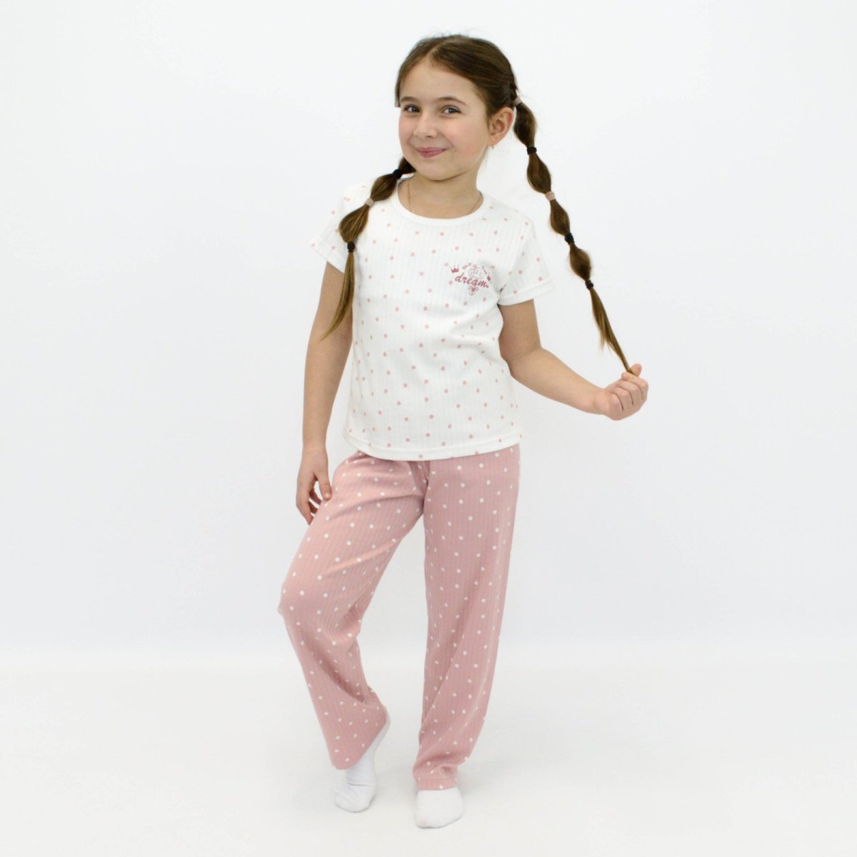 Пижама для девочки интерлок рапорт 377-793 Молочный Горошек