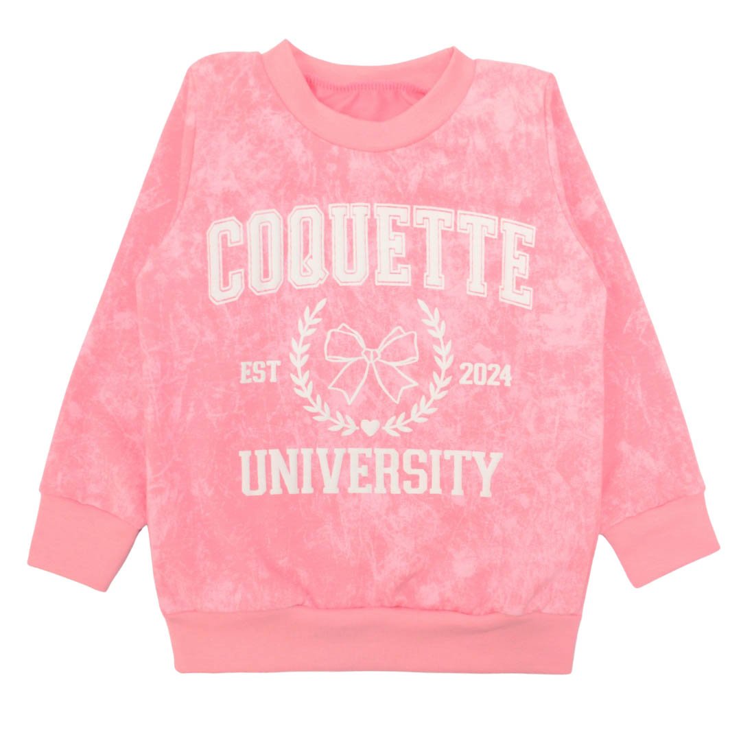 Представленная модель детского джемпера выполнена из полотна двухнитка розового цвета с надписью Coquette. Материал приятный к телу, хорошо держит форму и подходит для активного повседневного ношения. По всей поверхности ткани расположен стильный принт, который гармонично дополняет покраску попереду Свободный крой обеспечивает комфортную посадку и не ограничивает движения ребёнка во время игр, прогулок или занятий. Манжеты по низу изделия и на рукавах аккуратно фиксируют изделие. Материал устойчив к износу, не скатывается и остаётся приятным на ощупь. Джемпер представлен в нескольких расцветках, что позволяет легко подобрать вариант под любой гардероб.