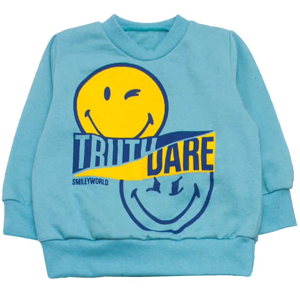 Джемпер детский, пыльно-бирюзового цвета, рисунок смайлик, отлично подойдёт для холодного времени года. Джемпер пошит из утеплённого полотна - начес, которое на 100% состоит из хлопка. Изделие предоставлено в разных расцветках с ярким рисунком посередине. Рукава с манжетами, а горловина и низ обработаны стрейчем из хорошо тянущегося полотна. В таком джемпере вашему моднику будет комфортно и тепло. К такой кофточке подойдут практически любые джинсы или штанишки, которые Вы также можете приобрести у нас. Закажите детский джемпер прямо сейчас, ведь количество очень ограничено!