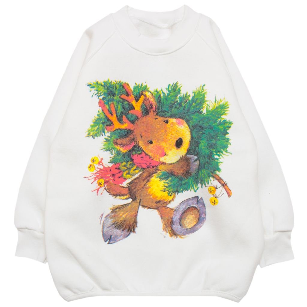 Теплый красивый джемпер новинка нашего интернет-магазина. Джемпер изготовлен из качественного трехниточного полотна. Полотно довольно плотное и теплое, внутри начесное. Модель интересного дизайна, рукав реглан, по низу обработано руликом в цвет основного полотна. Главным украшением и изюминкой этого джемпера является красивая и объёмная покраска по переду изделия покраска с оленем. Приобретайте обновку в нашем интернет-магазине и подарите своему ребенку комфорт и уют, а также радость от стильной покупки.
