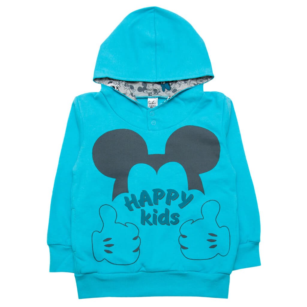 Стильный и невероятно красивый джемпер, бирюзового цвета, для девочки пошит из качественного трикотажного начеса. Благодаря такому полотну, изделие не будет доставлять дискомфорт и неудобства Вашему ребёнку. Изделие свободного кроя, и поэтому ничего не будет сковывать движения малыша. Края джемпера обработаны манжетами. Также присутствует капюшон. Данная модель кофточки для девочки украшена милым принтом спереди. Ваша маленькая модница точно будет в восторге от такой красивой вещички. Скорее порадуйте своего малыша с нашим интернет -магазином ТМ Арлекин!