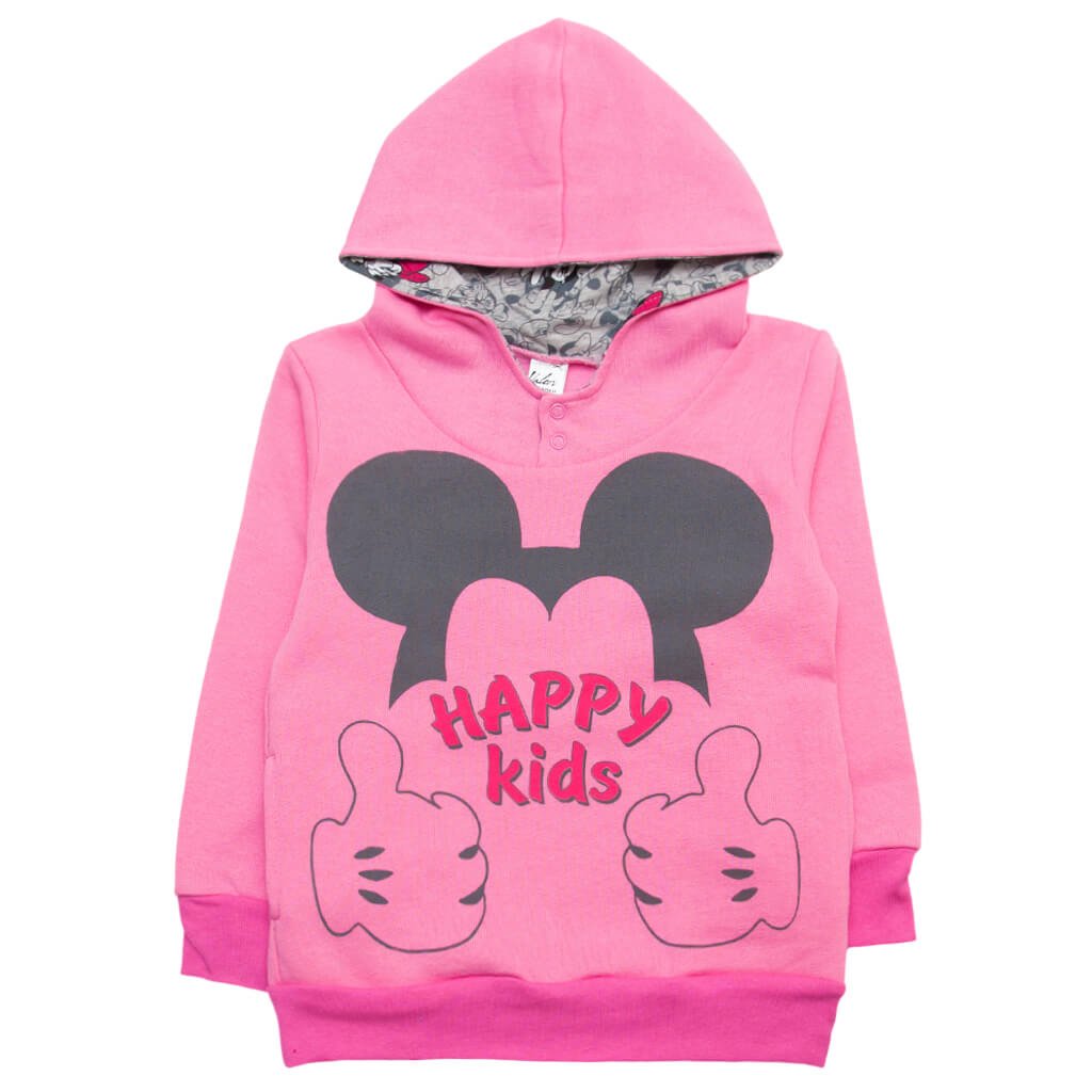 Стильный и невероятно красивый джемпер для девочки пошит из качественного трикотажного начеса. Благодаря такому полотну, изделие не будет доставлять дискомфорт и неудобства Вашему ребёнку. Изделие свободного кроя, и поэтому ничего не будет сковывать движения малыша. Края джемпера обработаны манжетами. Также присутствует капюшон. Данная модель кофточки для девочки украшена милым принтом спереди. Ваша маленькая модница точно будет в восторге от такой красивой вещички. Скорее порадуйте своего малыша с нашим интернет -магазином ТМ Арлекин!