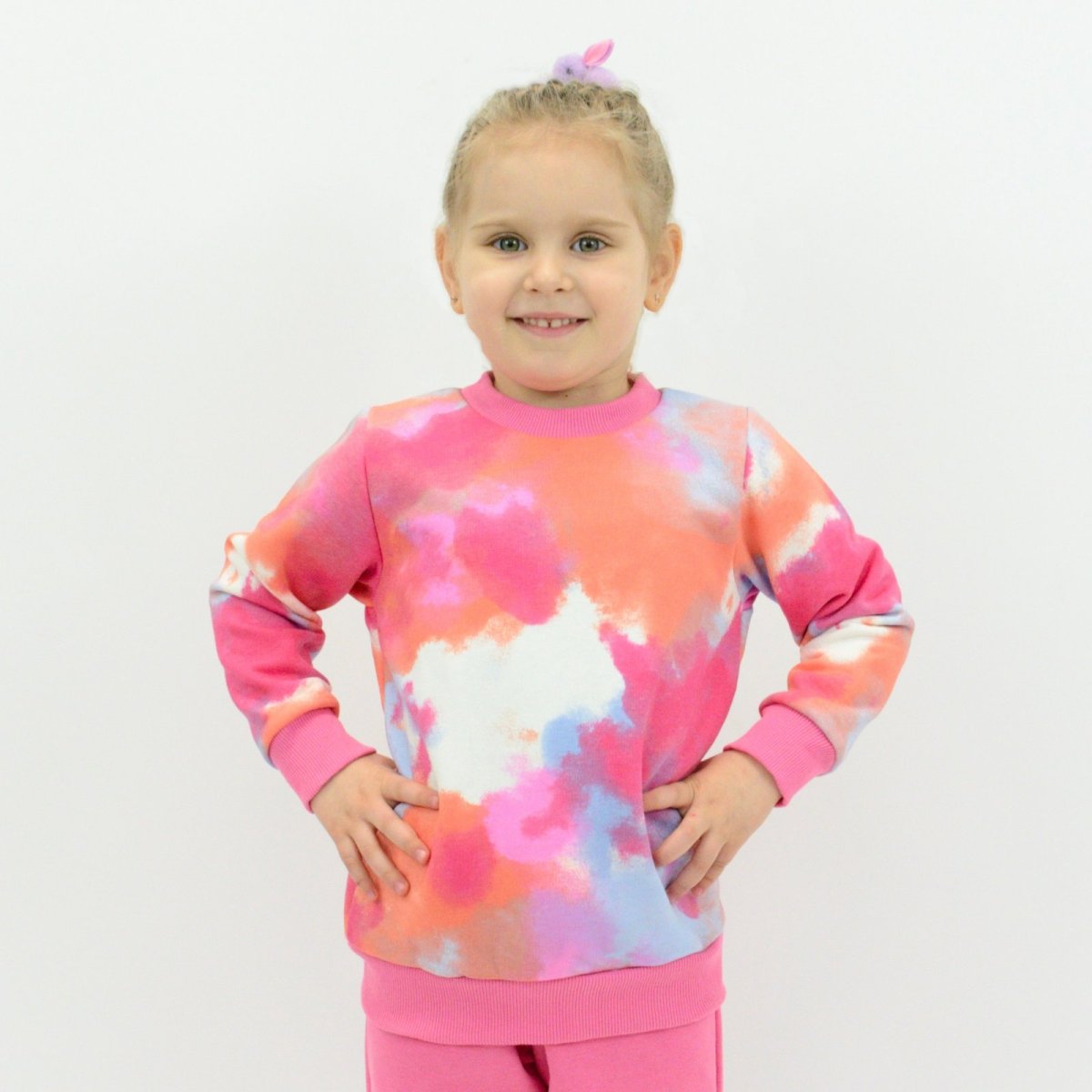 Стильный детский джемпер пошит из качественного трикотажного полотна - хлопок петля. Материал полностью состоит из натурального и гипоаллергенного хлопка, поэтому идеально подходит для повседневной носки. Розовый свитшот украшен красивым ярким принтом, который присутствует по всему полотну. Этот джемпер отлично сочетается с различными штанишками, джинсами или шортами позволяя создавать стильные и разнообразные образы для любой ситуации. Он подходит для повседневного ношения, прогулок, а также для активных игр на свежем воздухе.
