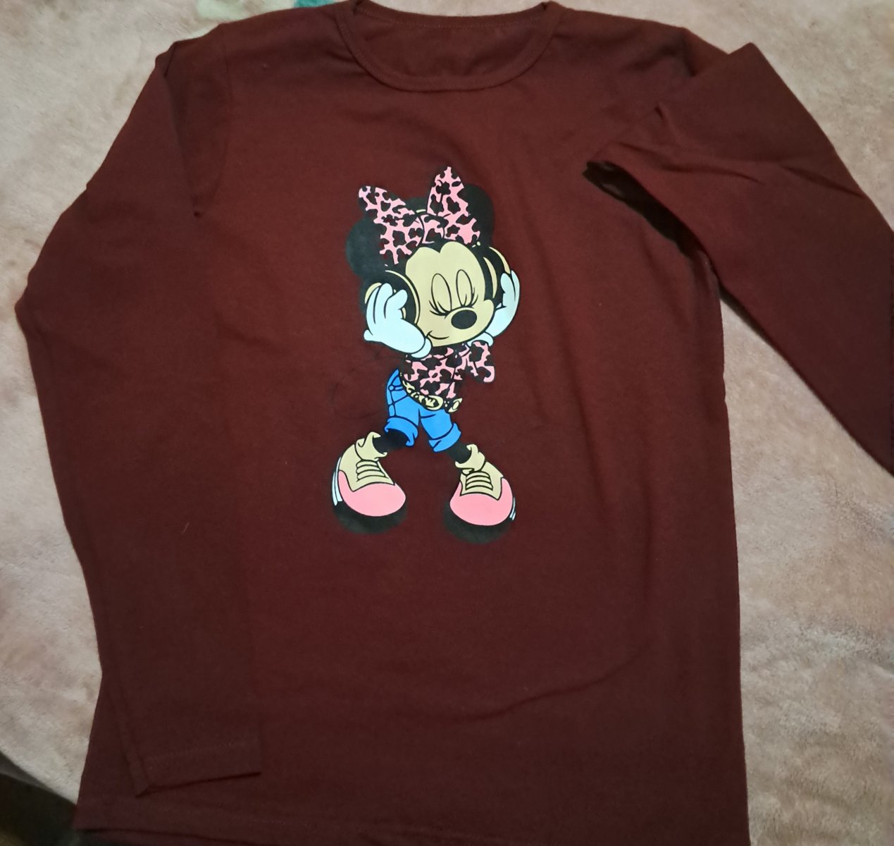 Реглан необходимая вещь в гардеробе каждого малыша. Данная модель пошита из качественного, мягкого полотна стрейч-кулир, цвет бордо, рисунок Минни. Полотно состоит из хлопка с добавление лайкры, за счет этого хорошо тянется и модельки хорошо садятся по фигуре. Полотно приятное к телу и не берется катышками. Горловина обработана бейкой из такого же полотна, рукава и низ реглана обработаны распошивом. Красивые, сочные цвета дополняет стильные покраски по переду изделия. Выбирайте нужный размер и понравившийся цвет и скорее оформляйте заказ.