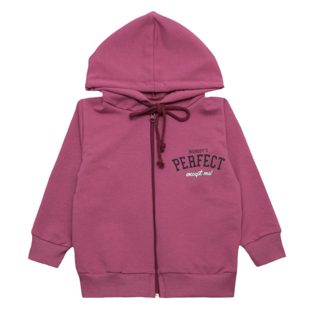 Ищете стильную и удобную кофту для своего ребёнка? Обратите внимание на нашу новую модель детской кофточки цвета пыльной розы на молнии из полотна двухнитка. Это высококачественный трикотажный материал, отличающийся своей плотностью и износостойкостью. Он идеально подходит для повседневного ношения, обеспечивая тепло и комфорт в любое время года. Кофта с капюшоном поможет защитить вашего ребёнка от ветра и прохлады, добавляя дополнительный уровень комфорта в прохладную погоду. Изделие дополнено качественной покраской в виде надписи Nobody's perfect except me на передней стороне.