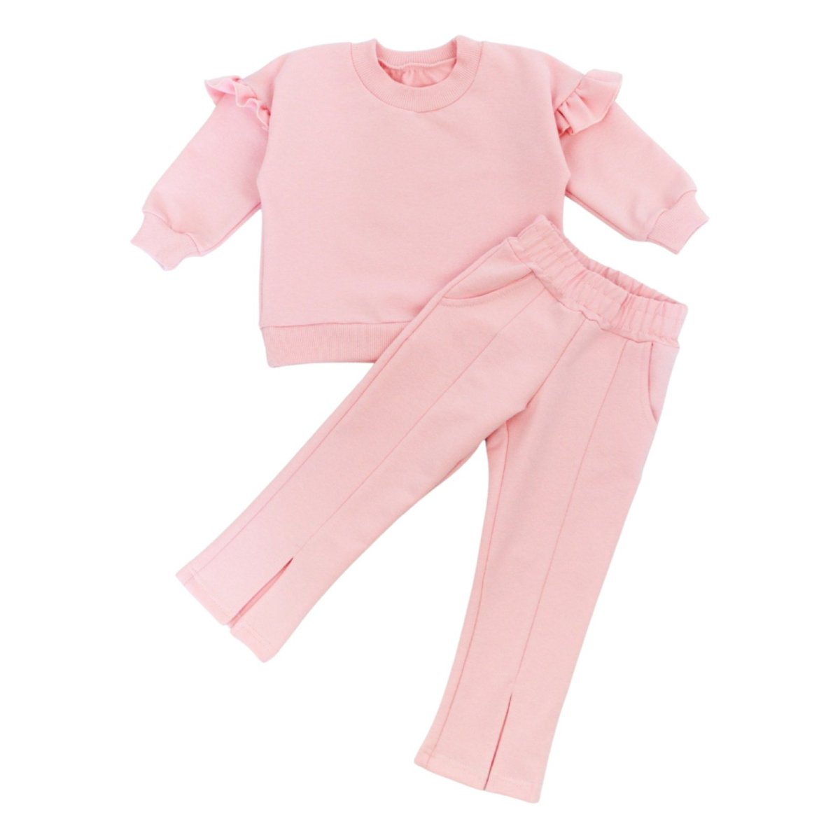 Есть вещи, которые моментально выделяются за счёт деталей, и этот детский костюм для девочки - именно такой вариант. Модель выполнена из мягкого полотна двухнитка пудрового цвета, обеспечивающего комфорт и свободу движений в течение всего дня. Однотонная расцветка делает комплект универсальным, а интересные акценты превращают его в стильный выбор для повседневной носки. Джемпер свободного кроя украшен аккуратными крылышками на рукавах. Эластичные манжеты на горловине, рукавах и по низу изделия помогают сохранить форму. Штаны также имеют свободную посадку, дополнены удобными карманам