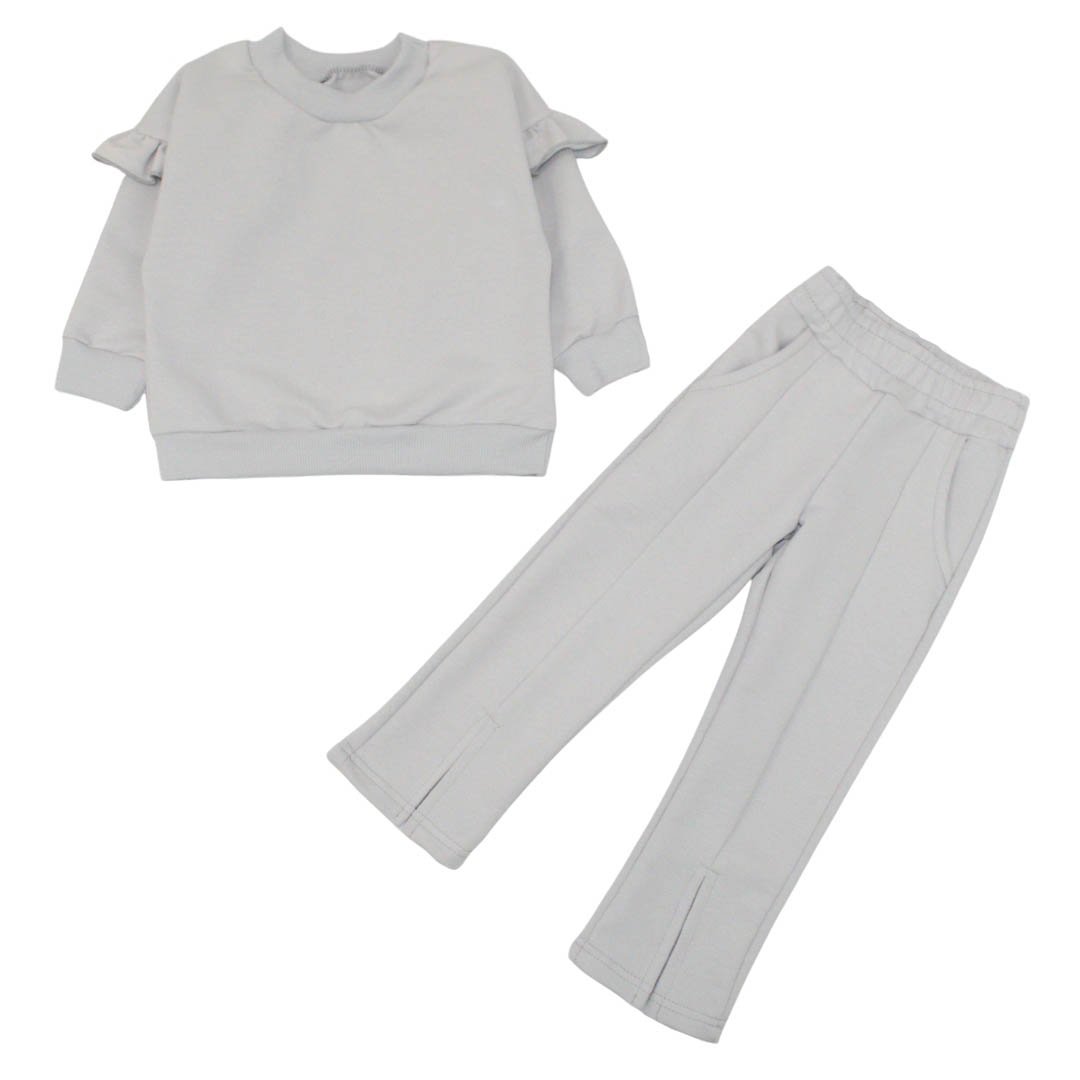 Есть вещи, которые моментально выделяются за счёт деталей, и этот детский костюм для девочки - именно такой вариант. Модель выполнена из мягкого полотна двухнитка серого цвета, обеспечивающего комфорт и свободу движений в течение всего дня. Однотонная расцветка делает комплект универсальным, а интересные акценты превращают его в стильный выбор для повседневной носки. Джемпер свободного кроя украшен аккуратными крылышками на рукавах. Эластичные манжеты на горловине, рукавах и по низу изделия помогают сохранить форму. Штаны также имеют свободную посадку, дополнены удобными карманами и поясом на резинке.