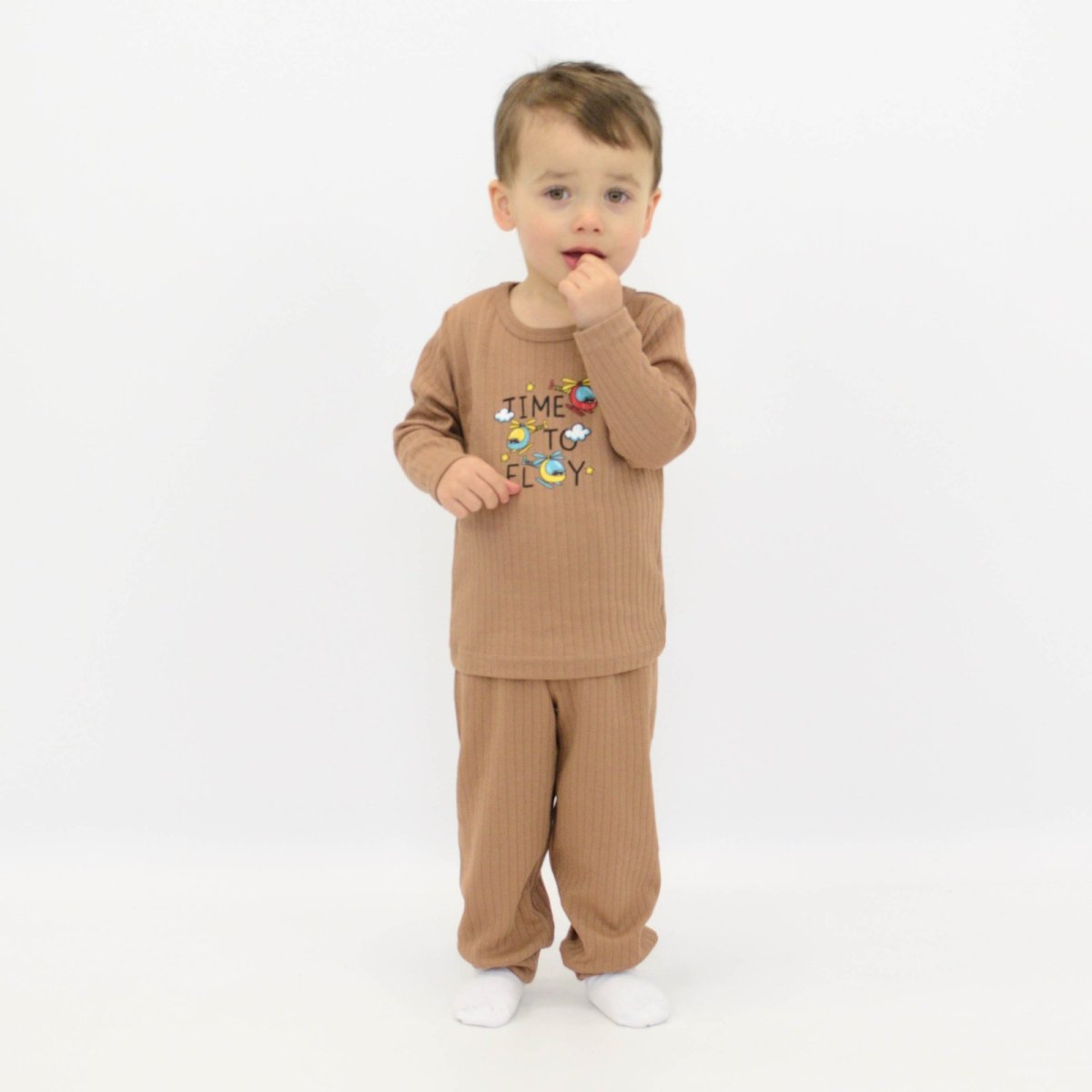 Комплект для мальчика интерлок 381-792 Коричневый Вертолеты