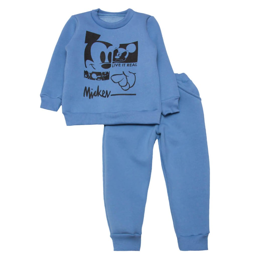 В ассортименте нашего интернет-магазина представлена трикотажная детская одежда из различных полотен. Вы остановились на детском костюме из тёплой ткани - трёхнить с начёсом. Такой костюм, голубого цвета, несомненно согреет Вашего ребёнка в холодную погоду, а удачный крой изделий обеспечит малыша комфортом и удобством во время носки. Свитшот с круглой горловиной, манжетами на рукавах и стрейчевой мягкой резинкой по низу. Спереди джемпер украшает красивый рисунок, который не сотрётся даже после многочисленной стирки. Штанишки по поясу на резинке, имеют карманы и манжеты снизу.