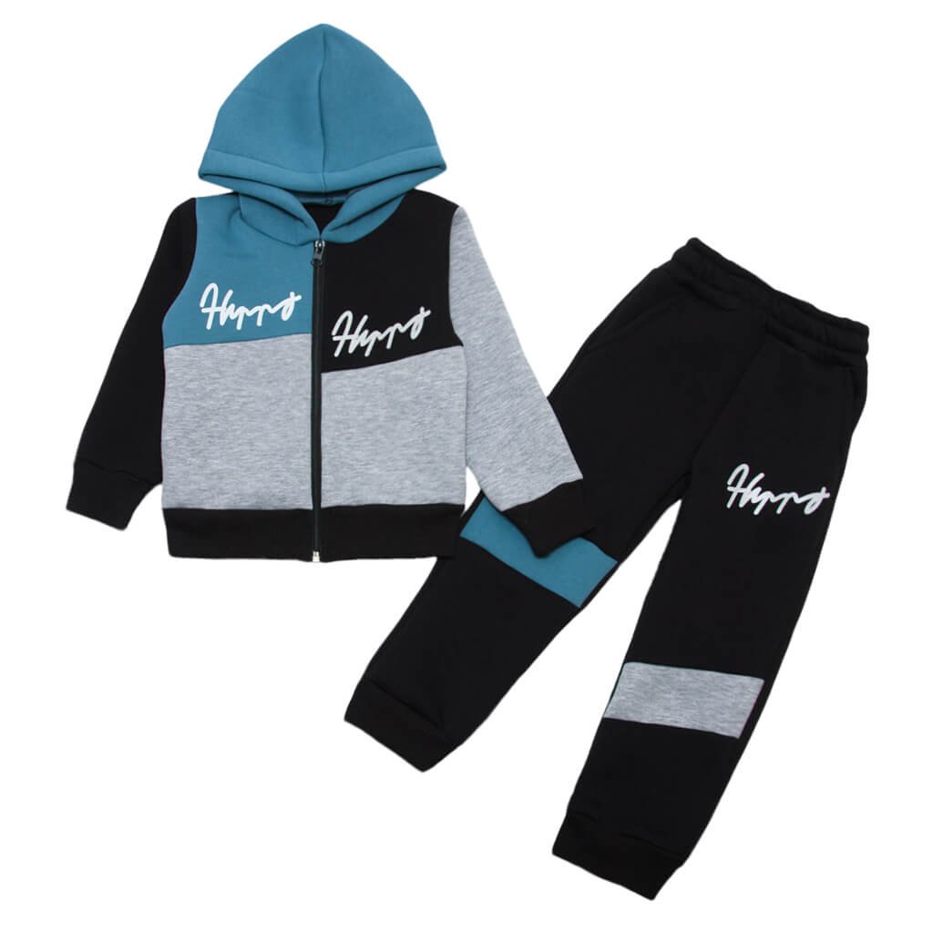 Спортивный костюм со вставкой темно-бирюзового цвета - незаменимая часть гардероба каждого ребёнка, как мальчика, так и девочки. Представленная модель выполнена из высококачественного трикотажного материала - трехнитка. Благодаря плотному и мягкому полотну, костюм обеспечивает комфорт и тепло, что особенно важно в холодный сезон. Комплект состоит из стильной кофты с капюшоном и удобных штанов. Штаны на эластичной резинке комфортно сидят на талии, не сковывая движений ребёнка. Наличие карманов делает костюм не только удобным, но и практичным для повседневного использования. Эластичные манжеты на рукавах кофты и штанинах брюк обеспечивают плотное прилегание.