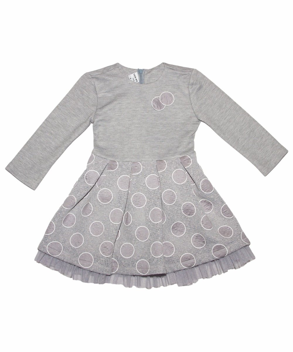 Красивое и нарядное платье для девочки серого цвета. У каждой юной леди в гардеробе должно висеть на тремпеле несколько красивых платьишек. Ведь даже в столь юном возрасте, девочки хотят выглядеть элегантно и нарядно, как их мама. Представляем вашему вниманию платьишко для вашей малышки. В состав ткани, из которого выполнено платье, входит 95% - вискозы и 5% - эластана. Платье с длинным рукавом, юбка - пышная, за счет двух слоев ткани. По низу пришит фатин. По спинке - молния. Талия регулируется пояском, который завязывается сзади. В таком платьишке ваша малышка будет выглядеть великолепно!