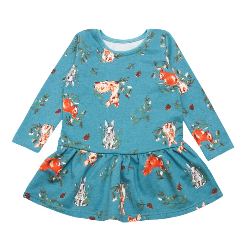 Детское платье из начеса для девочки - идеальный вариант для холодного времени года. Благодаря мягкому и плотному материалу оно прекрасно сохраняет тепло, обеспечивая комфорт даже в самые прохладные дни. По всей ткани присутствуют красивые рисунки и узоры, которые точно понравятся маленькой моднице. Такое бирюзовое платье с рисунками оленёнка и зайчика станет отличным выбором как для повседневной носки, так и для особенных моментов. Свободный крой изделия позволяет ребенку свободно двигаться, что особенно важно для активных девочек. Прочное качество материала гарантирует долговечность, а яркие принты не выцветают со временем.