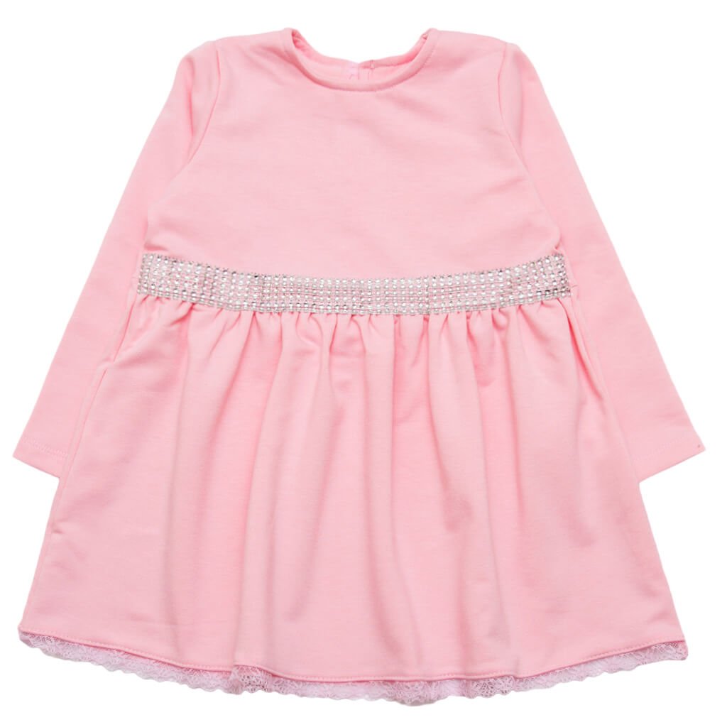 Нежное, очень красивое и нарядное платье я длинным рукавом для девочки поможет Вашей малютке создать образ настоящей принцессы! Такое платье подойдёт как на праздник, так и для повседневной носки, в любом случае Ваша малішка будет выглядеть неотразимо! Трикотажное платье для девочки - однотонное, а декоративными украшениями служат стразы в виде пояса, а также кружевная лента, пришитая к низу изделия. Юбочка у платья расклешённая, что добавляет платьешку лёгкости и воздушности. Сзади на спинке имеются кнопки, благодаря которым платье легко можно надеть через голову. Данная модель детского платья отлично подойдет на более прохладное время года, такое платьишко добавит ярких красок даже в самые серые будни.