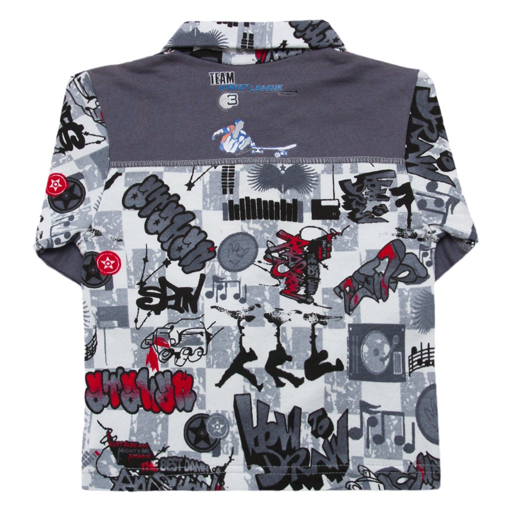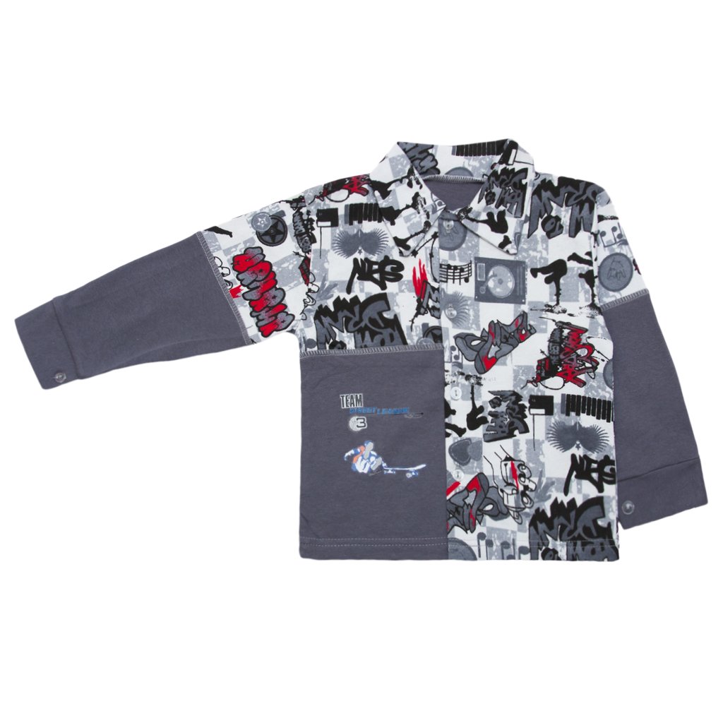 Представляем Вашему вниманию супер-новинку нашего интернет-магазина «Арлекин»! Стильная рубашка для мальчика пошита из качественного начесного полотна, которое на 100% состоит из натурального хлопка серого цвета. Материал абсолютно безопасный для нежной кожи малыша. Рубашечка выполнена из двух расцветок начесной ткани. Также на изделии присутствует различные интересные рисунки. Такая рубашка будет прекрасно сочетаться с джинсами, которые Вы также сможете приобрести на нашем сайте. Мы с нетерпением будем ждать Ваш заказ!
