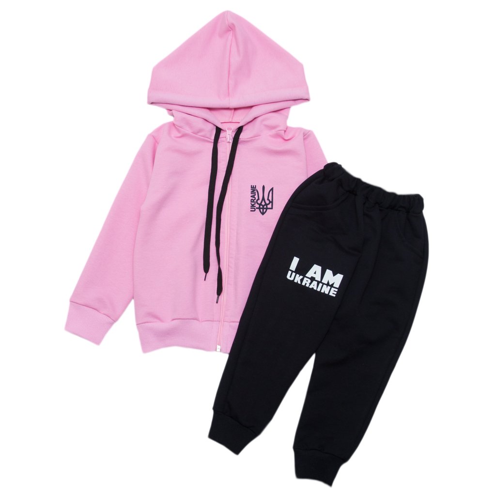 Интернет-магазин "Арлекин" хочет обрадовать Вас своей невероятной и стильной новинкой. Детский спортивный костюм состоит из кофты розового цвета и штанишек черного цвета. Представленные изделия изготовлены из высококачественного трикотажного полотна - двухнитки. Данная ткань полностью состоит из натурального хлопка, поэтому полотно абсолютно безопасное для кожи ребёнка. В таком спортивном костюме вашему ребёнку будет максимально комфортно. Кофта дополнена уютным капюшоном. На штанах присутствуют кармашки. Также представленный костюм дополнен стильными надписями, которые точно понравятся Вашему ребёночку.