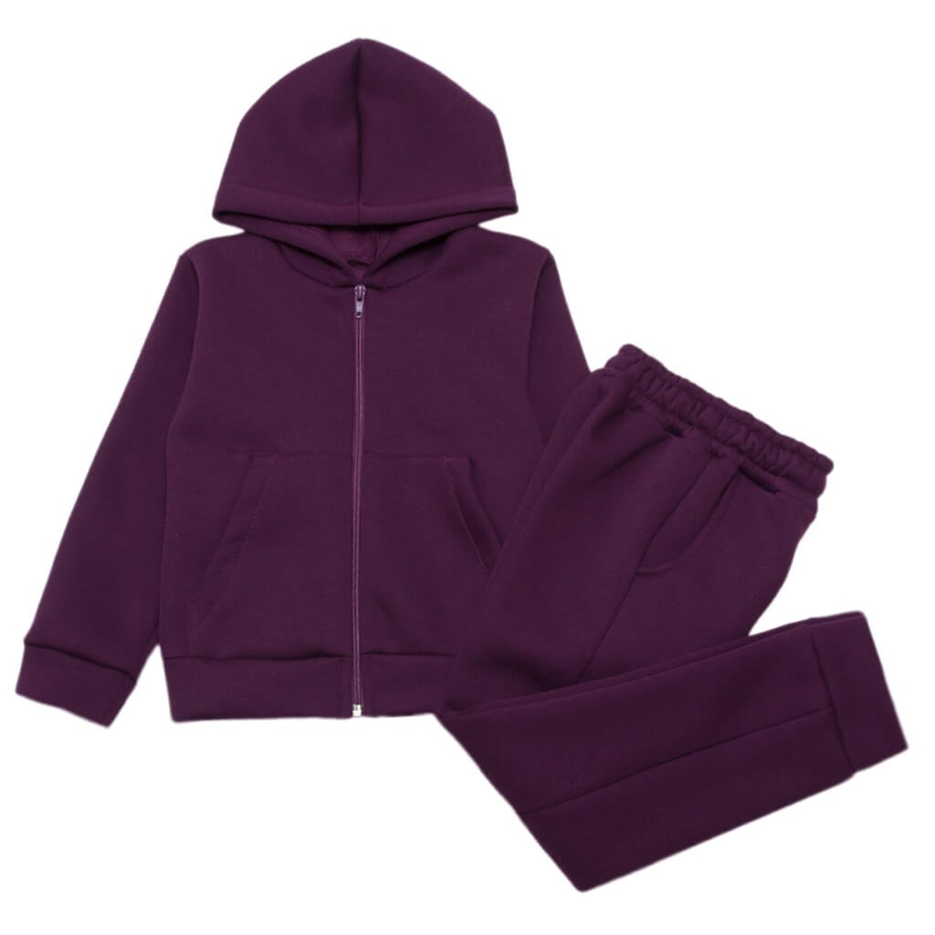 Детский спортивный костюм изготовлен из высококачественного трикотажного полотна - трёхнитки с начесом цвета баклажана. Это мягкий и тёплый материал, который подарит Вашему ребёнку максимальное чувство комфорта и тепла. Костюм состоит из кофточки на молнии и штанишек. Также кофта имеет капюшон и небольшие кармашки. Штанишки выполнены на мягкой резинке. Спортивный костюм из начесной трёхнитки легко стирается и долгое время сохраняет свой исходный вид и качество. Представленная модель детского костюма отлично подойдёт как для занятий спортом, так и для повседневной носки.