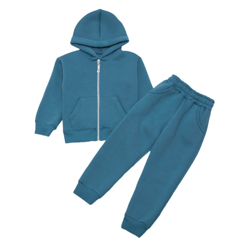 Спортивный детский костюм состоит из кофты с капюшоном и штанишек. Изделия изготовлены из мягкого качественного трикотажного полотна - трехнитки. Данная ткань обеспечивает хорошую воздухопроницаемость и комфорт, что делает его идеальным вариантом как для спортивных занятий, так и для повседневного ношения. Кофта с капюшоном выполнена на молнии и дополнена небольшими кармашками. На поясе штанишек присутствует мягкая эластичная резинка. Данный спортивный костюм представлен в пыльно-бирюзовом цвете, идеальный вариант как для мальчика, так и для девочки.