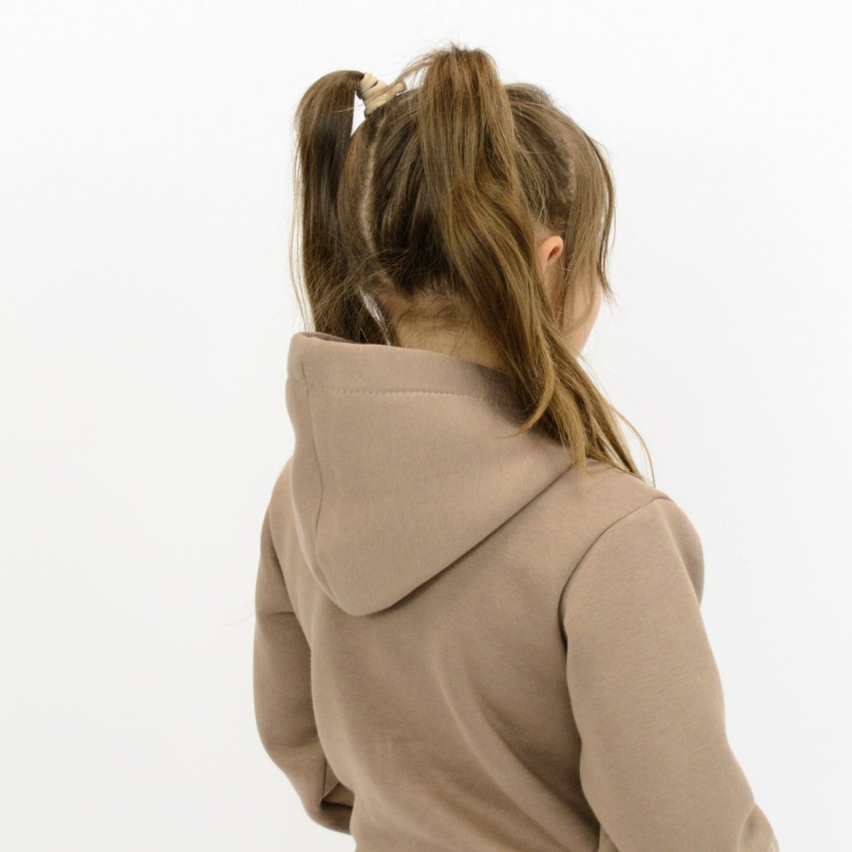 Спортивный детский костюм состоит из кофты с капюшоном и штанишек. Изделия изготовлены из мягкого качественного трикотажного полотна - трехнитки. Данная ткань обеспечивает хорошую воздухопроницаемость и комфорт, что делает его идеальным вариантом как для спортивных занятий, так и для повседневного ношения. Кофта с капюшоном выполнена на молнии и дополнена небольшими кармашками. На поясе штанишек присутствует мягкая эластичная резинка. Данный спортивный костюм представлен в песочном цвете, идеальный вариант как для мальчика, так и для девочки.