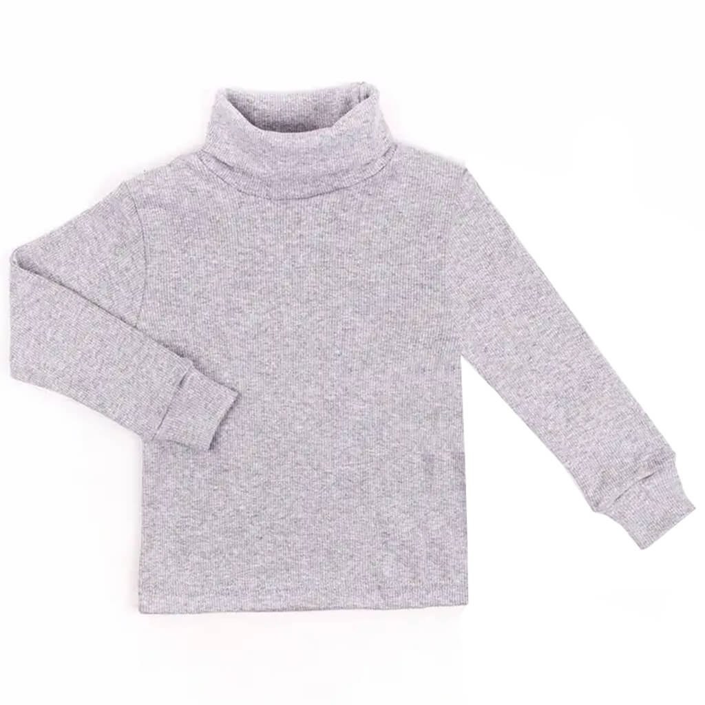 Детский гольф с горлом из утеплённого рубчика серого цвета подойдёт на прохладное время года. Внутри детская водолазка для мальчика и девочки утеплённая небольшим начёсом, а это значит, что даже на зиму такая водолазка с горлом будет идеальным вариантом. Водолазка из рубчика очень хорошо тянется и сохраняет свою форму за счёт высокого уровня эластичности ткани. Это хлопковая ткань , отличается высоким качеством и износостойкостью. Гольф на осень, весну и зиму является базовой вещью, его можно комбинировать с любыми штанами и даже юбкой, а также надевать под низ кофты.