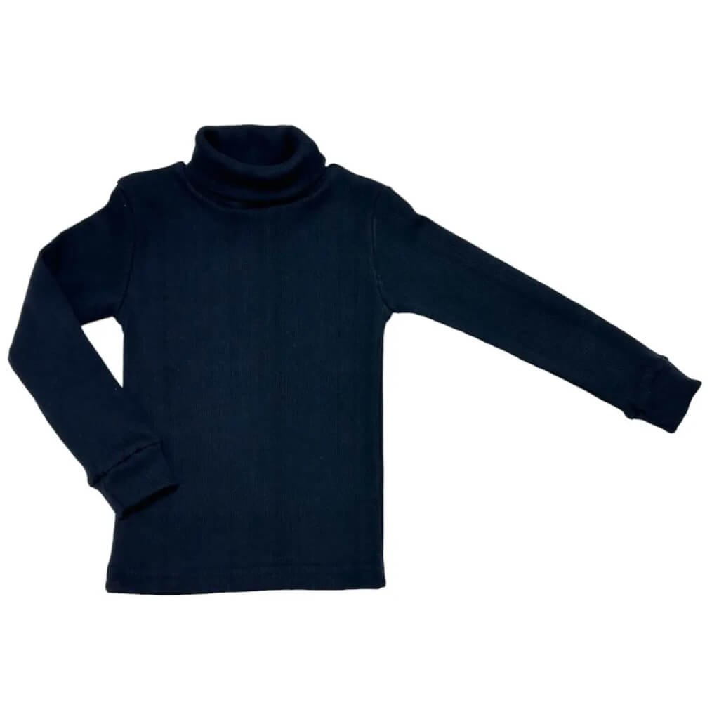 Детский гольф с горлом из утеплённого рубчика синего цвета подойдёт на прохладное время года. Внутри детская водолазка для мальчика и девочки утеплённая небольшим начёсом, а это значит, что даже на зиму такая водолазка с горлом будет идеальным вариантом. Водолазка из рубчика очень хорошо тянется и сохраняет свою форму за счёт высокого уровня эластичности ткани. Это хлопковая ткань , отличается высоким качеством и износостойкостью. Гольф на осень, весну и зиму является базовой вещью, его можно комбинировать с любыми штанами и даже юбкой, а также надевать под низ кофты.