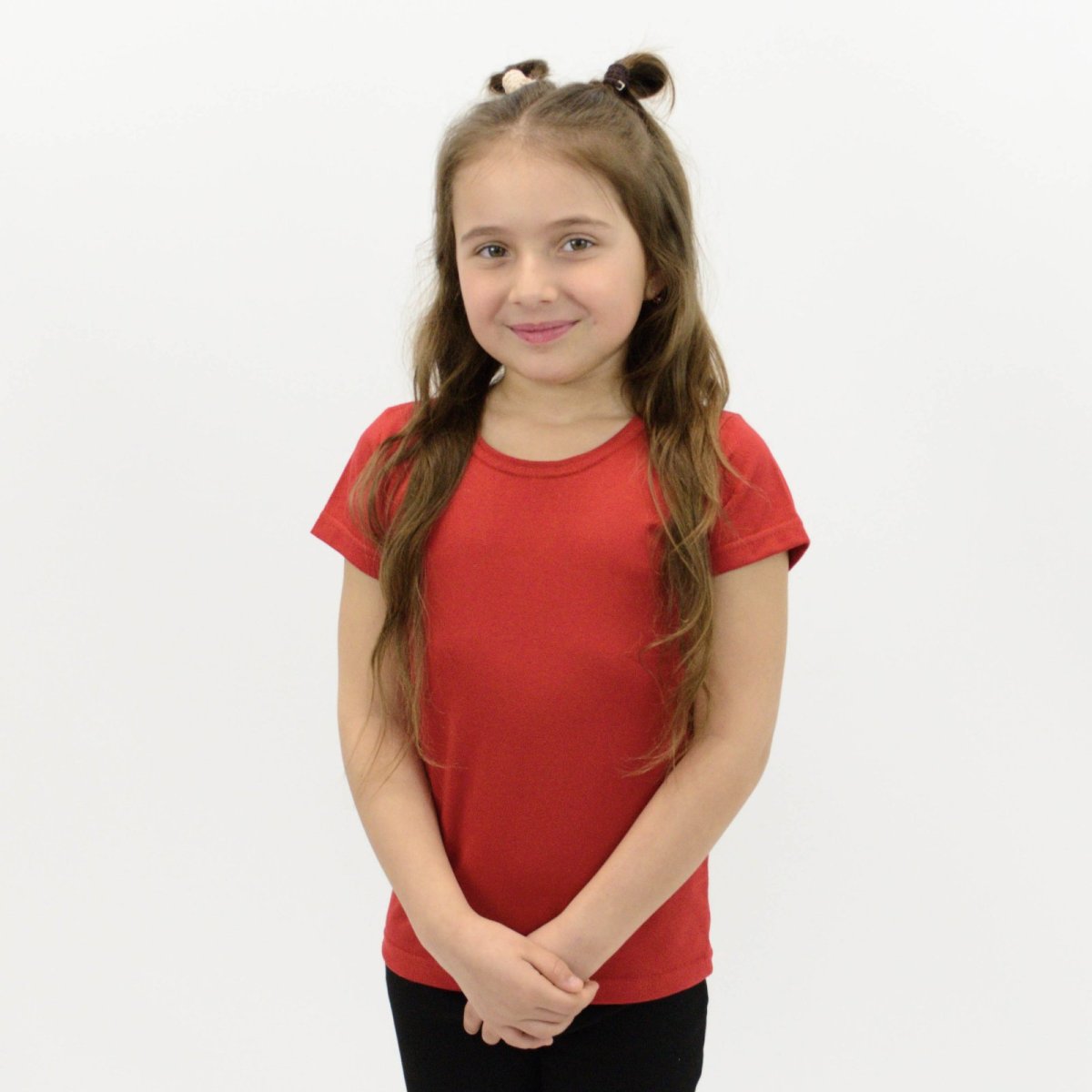 Футболка детская из натурального кулирного полотна. Базовая, простая моделька футболочки обязательно нужна в гардеробе каждого ребенка. Футболочка красного цвета, обязательно будет по душе, Вашему ребенку. Высококачественное полотно состоит их хлопка и позволяет коже дышать, и вызывает лишнего потоотделения. На футболке по горловине окантовка бейкой, низ и рукава обработаны распошивом. Данную модель можно использовать в теплое время года, а так же, для занятий физкультуры в садик или школы. Также в нашем интернет-магазине Вы сможете подобрать одежду на любой возраст и сезон для своих детишек. А мы конечно в свою очередь будем старться радовать Вас красивыми, модными и стильными новинками.