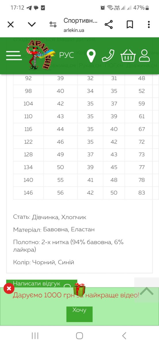 Склад тканини не відповідає опису взагалі. На сайті вказано 94 % бавовна 6 % лайкра, а по факту майже навпаки.Тканина штучна, дешева, паритьПлюсы: НемаєМинусы: Тканина не відповідає опису на сайті. Під описом двохнитка і 94% бавовни продають дешеву синтетику.Ответ администрации магазина: Добрий день, на жаль, не змогли знайти замовлення на цей костюм за вказаними даними (Прізвище, Ім'я, ел. адреса), щоб переглянути, який саме костюм Ви замовляли... Підкажіть, будь ласка, який номер Вашого замовлення? Проте на етикетці та на сайті ми зазначаємо склад тканини, який нам надають постачальники. Дійсно тканина не на 100% складається з бавовни і ми це не приховуємо, та з точністю можемо сказати, що вона не синтетична, лайкри є лише домішок для пружності та еластичності, а бавовна переважає у складі. В нас можливе повернення товару, якщо він не підходить з тих чи інших причин. З повагою ТМ "Арлекин". -