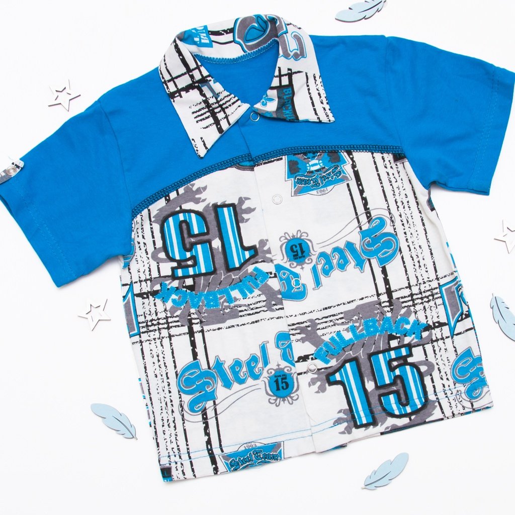 Для каждой мамочки ее ребенок самый красивый. И так же каждая мамочка хочет одевать своего сыночка по последним пискам моды. Так важно иметь не только красивую рубашку для своего малыша, но и удобную и что не мало важно натуральную. Красивая рубашечка голубого цвета с якорем должна быть у каждого маленького мальчика. Тело вашего малыша будет дышать и не удерживать влагу. Ваш ребенок скажет вам спасибо. Моделька сделана из полотна кулир-набивной. По низу рукавчика вставлена фурнитура цветной кнопочкой. Впереди рубашки застёжки-кнопки. На рубашки набиты очень яркие принты. ТМ Арлекин с большим удовольствие доставляет вам хорошее настроение.