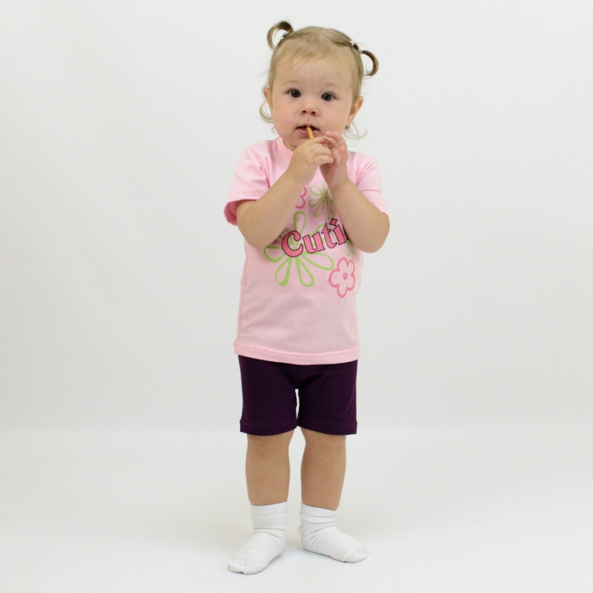 Летний красивый комплект для девочки состоит из футболки розового цвета и шортиков бордового цвета. Комплект выполнен из полотна стрейч-кулир. Полотно мягкое, приятное к телу, гипоаллергенное. На одном плечике футболки - застежка на кнопках. Впереди милая покраска цветочков, которая точно понравится Вашей малышке. Покраска на футболке отлично сочетается с цветом шортиков. По поясу, шортики, на эластичной резинке, поэтому не будут передавливать животик вашей крохе. Подберите понравившуюся расцветку и порадуйте свою девочку новинкой от ТМ "Арлекин"!