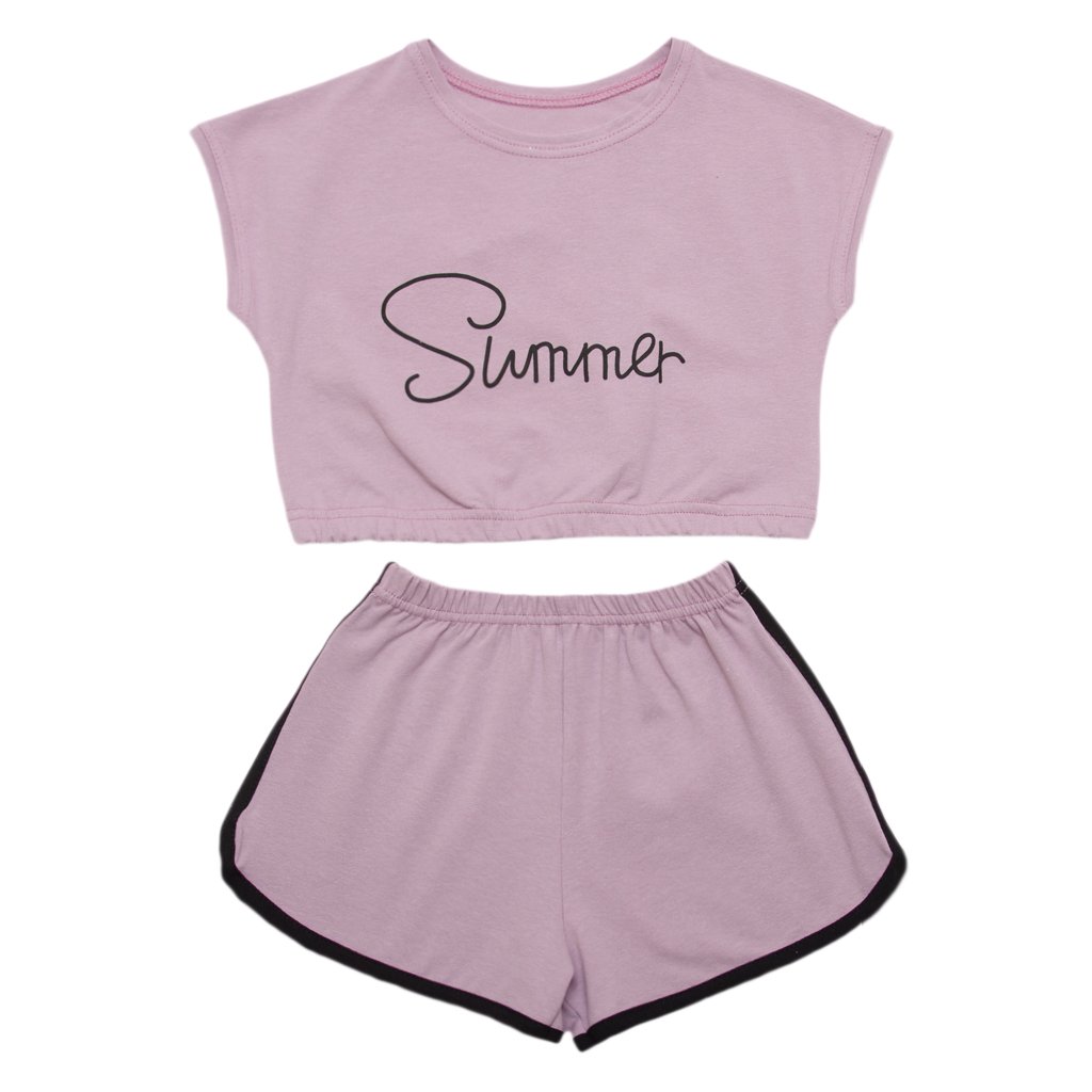 Стильная новинка нашего интернет-магазина "Арлекин", которая точно понравится маленьким модницам. Представленный комплект для девочки состоит из футболки и шорт сиреневого цвета. Изделия пошиты из высококачественного трикотажного полотна - стрейч-кулира. Такой материал обладает хорошей эластичностью, благодаря чему, комплект обеспечит комфорт и полную свободу движений. Укороченная футболочка дополнена стильной надписью, а по низу изделия присутствует резинка. Детский комплект футболки и шортов идеально подходит для игр на открытом воздухе, прогулок, пикников и других активностей.