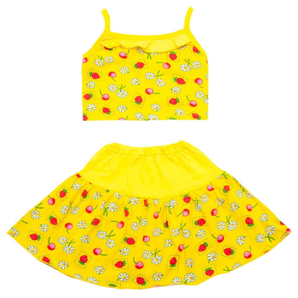 Когда за окном начинается настоящее лето, мы радуем своих детой яркой и стильной одеждой. Торговая марка «Арлекин» подготовила для Вас невероятные новинки для тёплого времени года. Летний комплект для девочки состоит из топа на тоненьких лямках и юбки. Изделия пошиты из высококачественного кулира, который подарит невероятную лёгкость и комфорт Вашей малютке. Также полотно полностью натуральное, по этому безопасное для чувствительной кожи малыша. Яркие рисуночки по всему полотну точно понравятся ребёнку.