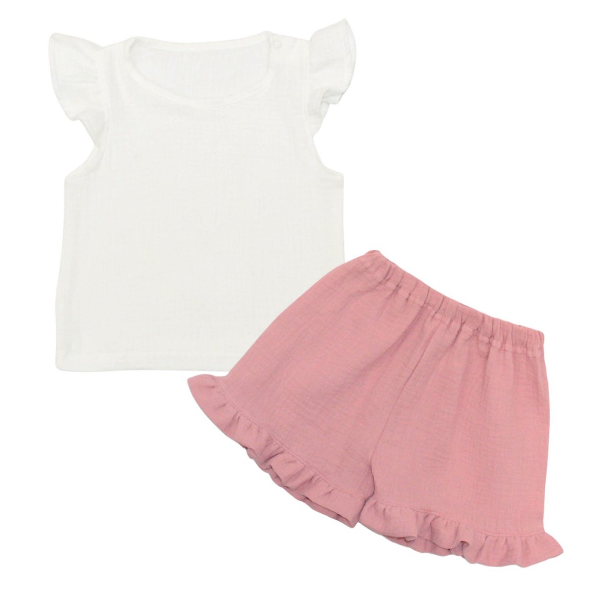 Новая модель детского комплекта для девочки выполнена из нежного муслина, он идеально подойдет для теплых дней, позволяя коже дышать и создавая ощущение легкости. Однотонные расцветки смотрятся элегантно и стильно, делая комплект универсальным для повседневных прогулок и летнего отдыха. Майка молочного цвета имеет удобную застежку на кнопке возле горловины, что облегчает процесс одевания даже самым маленьким. Оригинальные рукавчики с нежными сборками добавляют образу изящности. Шортики терракотового цвета на мягкой резинке комфортно сидят на талии, не сдавливая животик. Этот комплект станет любимым вариантом для жаркого сезона, обеспечивая ребенку удобство и свободу движений в любой ситуации.