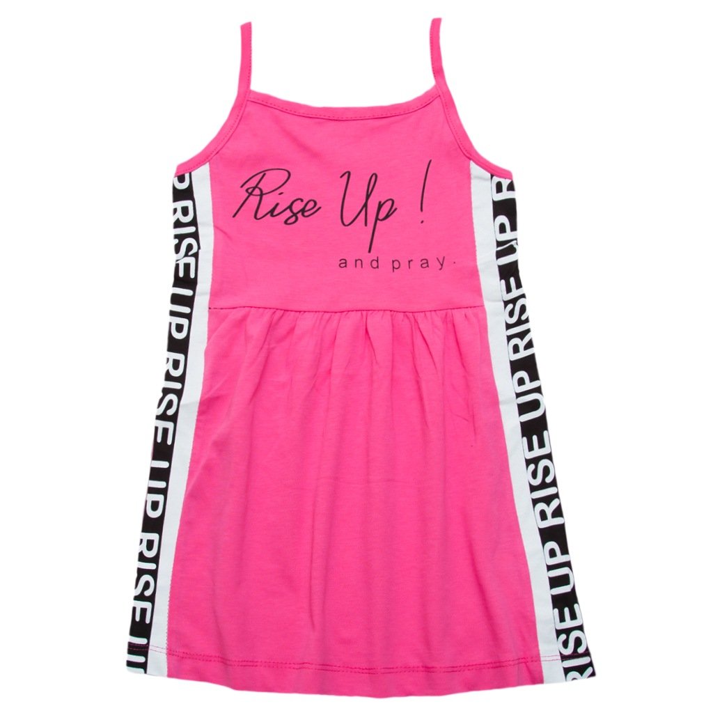 Ни одна девочка не обойдётся без красивенького розового платьица в гардеробе. В нашем интернет-магазине огромное количество разных моделей платьев. Данная модель изготовлена из высококачественной фуликры, такое полотно позволяет коже дышать, и при этом будет хорошо сидеть на ребёнке. Платье на лямках, что прекрасно подойдет для летнего периода. По бокам присутствуют вставки с надписями по всей длине, выглядит достаточно стильно и привлекательно. Такой вариант платья отлично сядет на Вашей маленькой принцессе и будет смотреться невероятно красиво!
