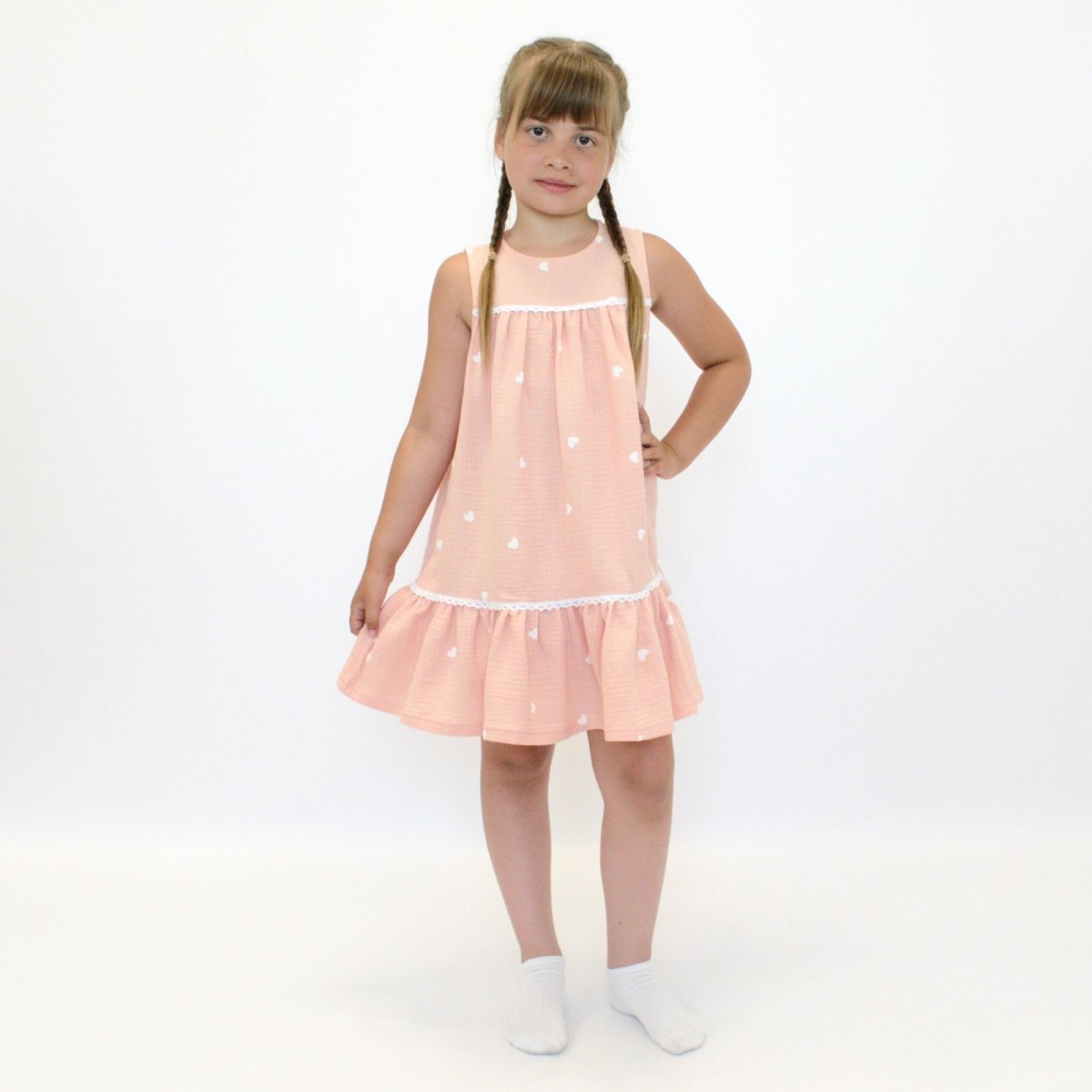 Сарафан для девочки муслин 5243-863 Персиковый Сердечки