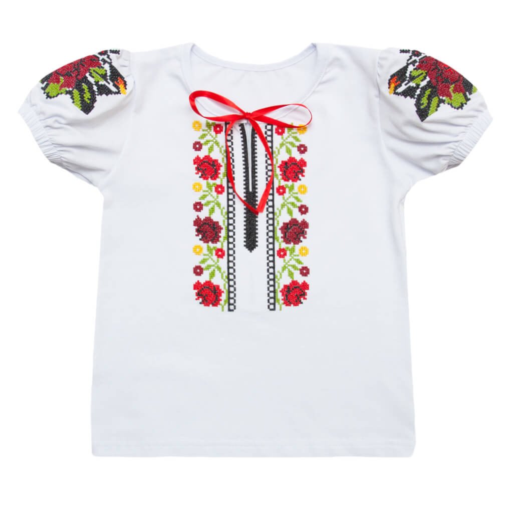 Новая модель детской вышиванки для девочки выполнена из высококачественного стрейч-кулира. Полотно изготовлено из хлопка с добавлением эластичных волокон. Благодаря этому материал обладает отличной воздухопроницаемостью, позволяя коже дышать и предотвращая перегрев, что особенно важно в тёплую погоду. Вышиванка с коротким рукавом идеально подходит для тёплых дней. Вышивка роз расположена на груди, а также на рукавах. Кроме этого края рукавов дополнены мягкой резиночкой. Такая вышиванка - идеальный вариант для Вашей маленькой красавицы.