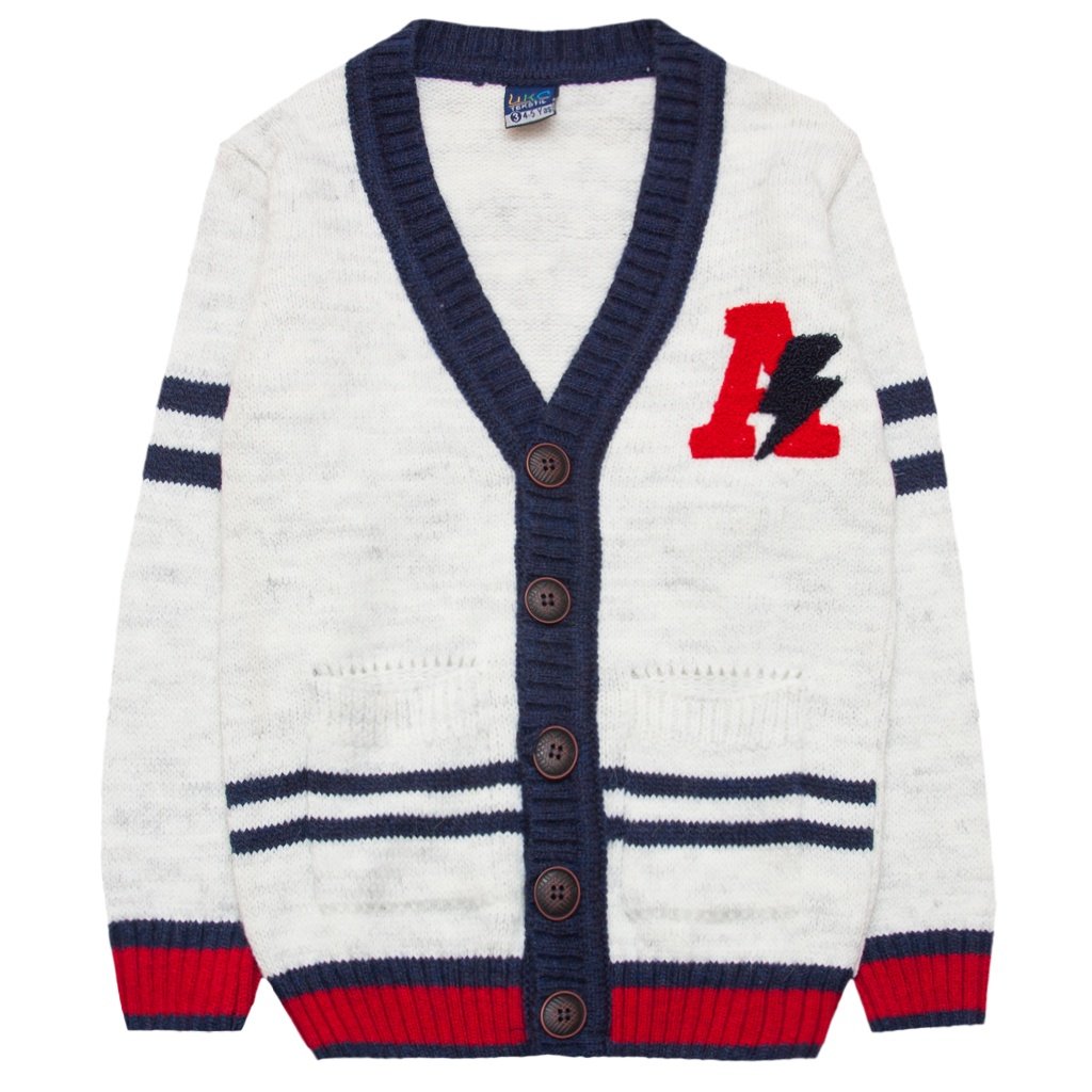 Теплый серый джемпер для мальчика. Джемпер прекрасно подойдет для школы, для садика, для прогулки с родителями. Материал из которого пошит джемпер безумно мягкий! Выполнен на пуговицах, что дает возможность расстегнуть его, если жарко, спереди имеется вышивка в виде эмблемы, для стильности, также есть два кармана, в которые ребенок может положить конфетку. Низ джемпера, как и низ рукавов сделаны на тоненькой резиночке, для комфортной носки. Джемпер можно сочетать как с рубашкой, так и с водолазкой, на ваше усмотрение. В таком теплом и уютном джемпере вашему ребенку всегда будет комфортно.