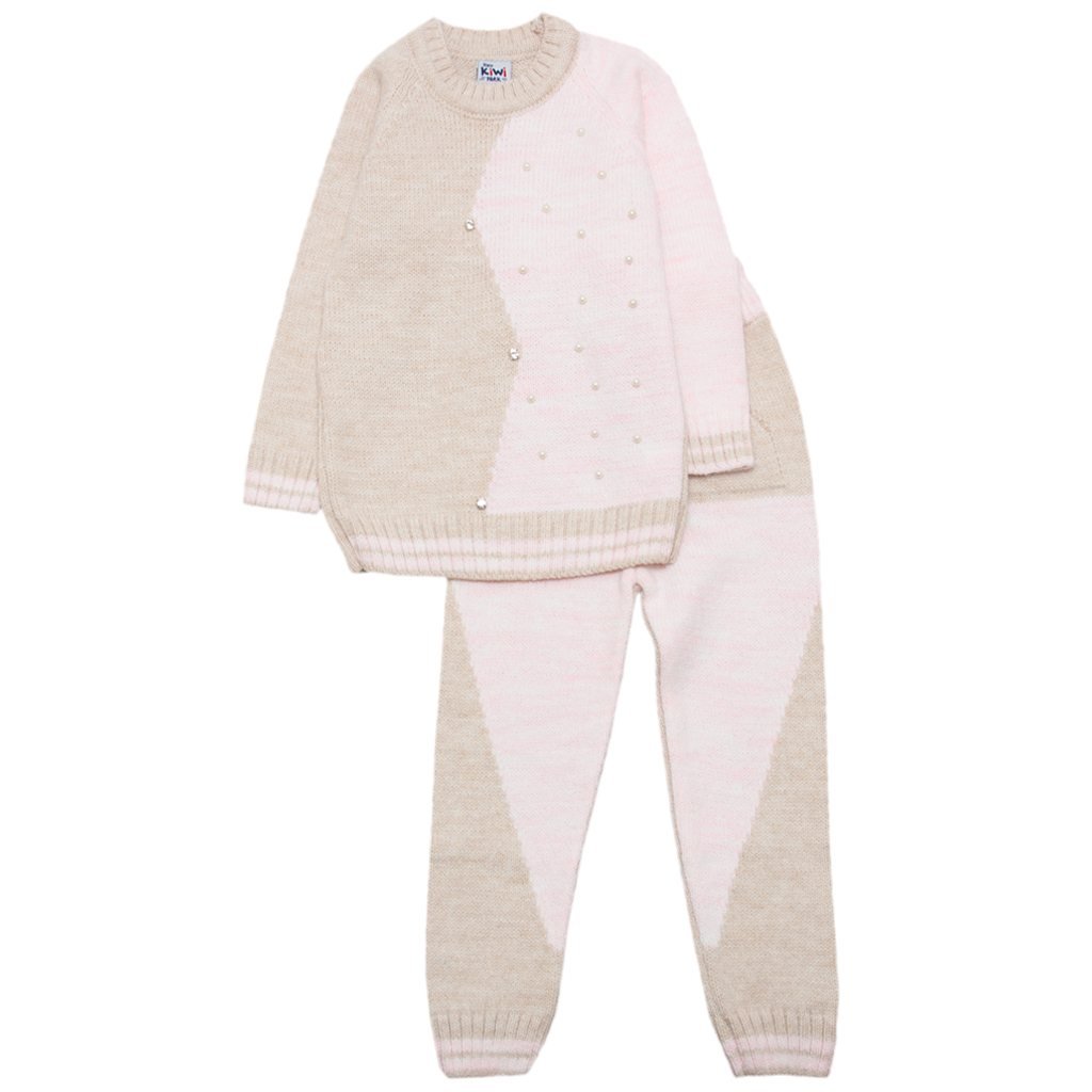 Костюм вязаный для девочки Модель К102 Беж/розовый