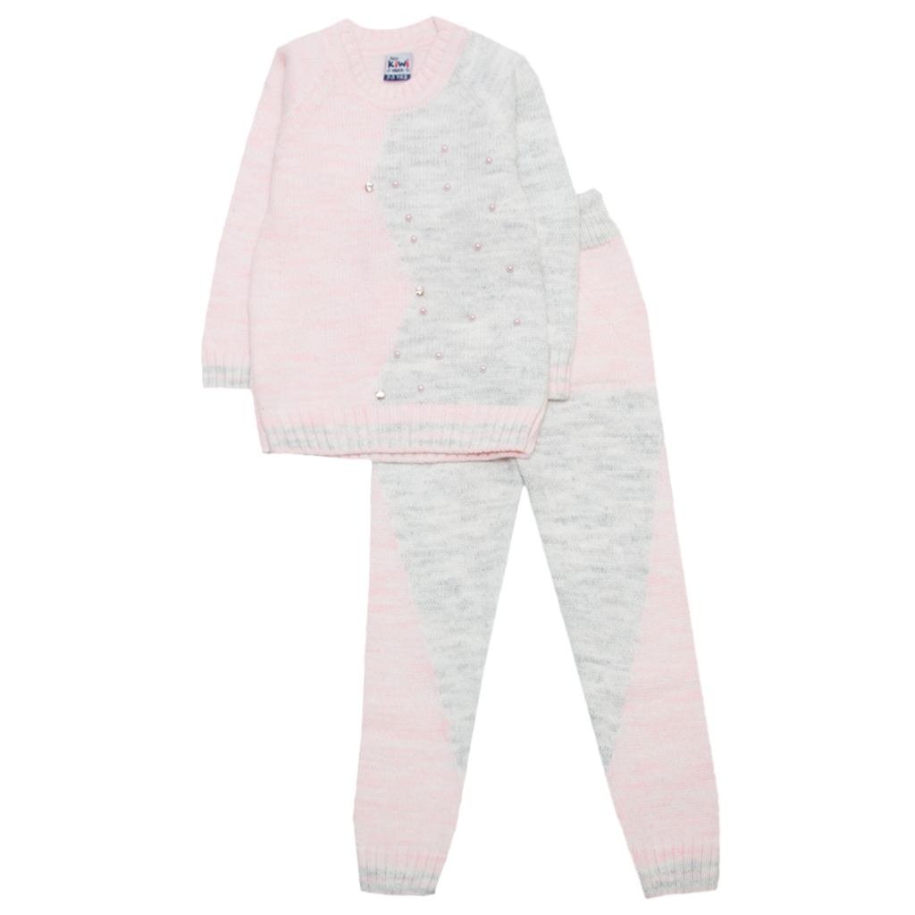 Костюм вязаный для девочки Модель К102 Розовый/серый